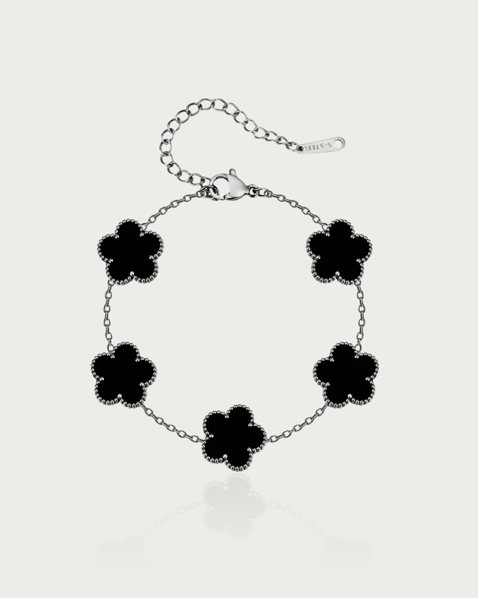 Unser elegantes, 100 % wasserdichtes schwarzes Kleeblatt-Armband schmiegt sich perfekt an Ihr Handgelenk und sorgt für einen wunderschönen Look. Es ist in Gold oder Silber erhältlich.