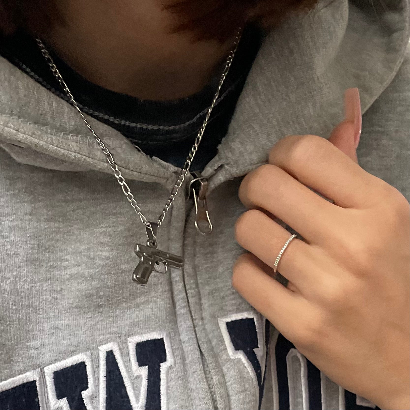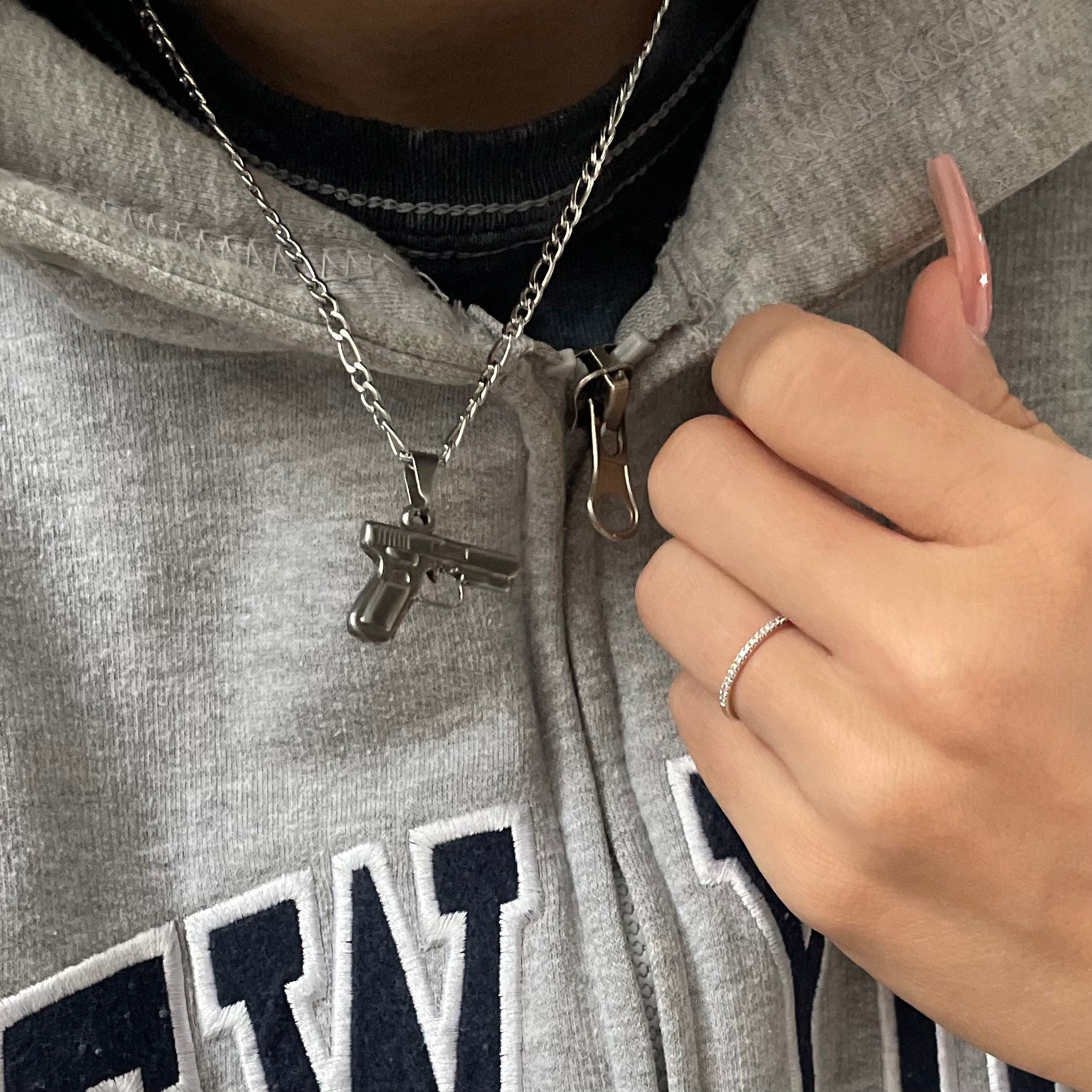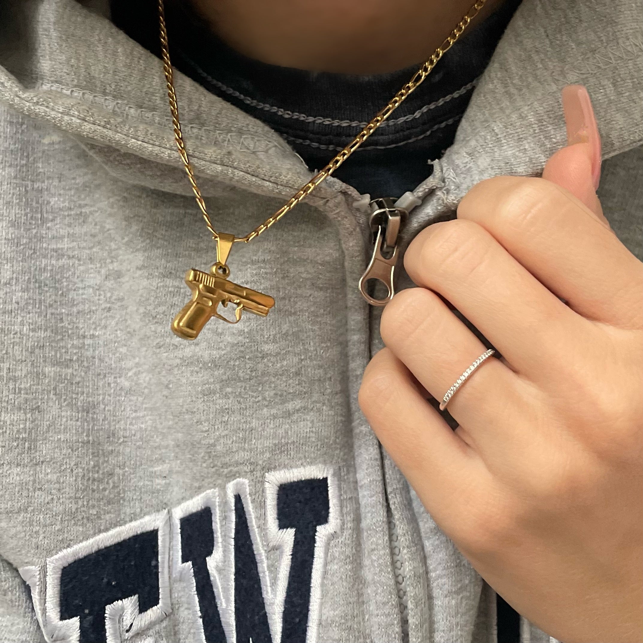 Unsere wasserdichte Unisex-Halskette mit Pistolenmotiv passt perfekt über Ihren Hals und erinnert Sie immer an das Gangsterleben. Sie verfügt über eine einzigartige Figarokette und ist in Gold und Silber erhältlich. Diese 40 + 6 cm lange Halskette mit Anhänger eignet sich hervorragend zum Tragen in mehreren Lagen und sieht wunderschön aus, wenn Sie sie mit beliebigen Ketten kombinieren. Und das Beste daran? Sie ist 100 % wasserdicht, da sie aus 18 Karat vergoldetem/versilbertem Edelstahl besteht.