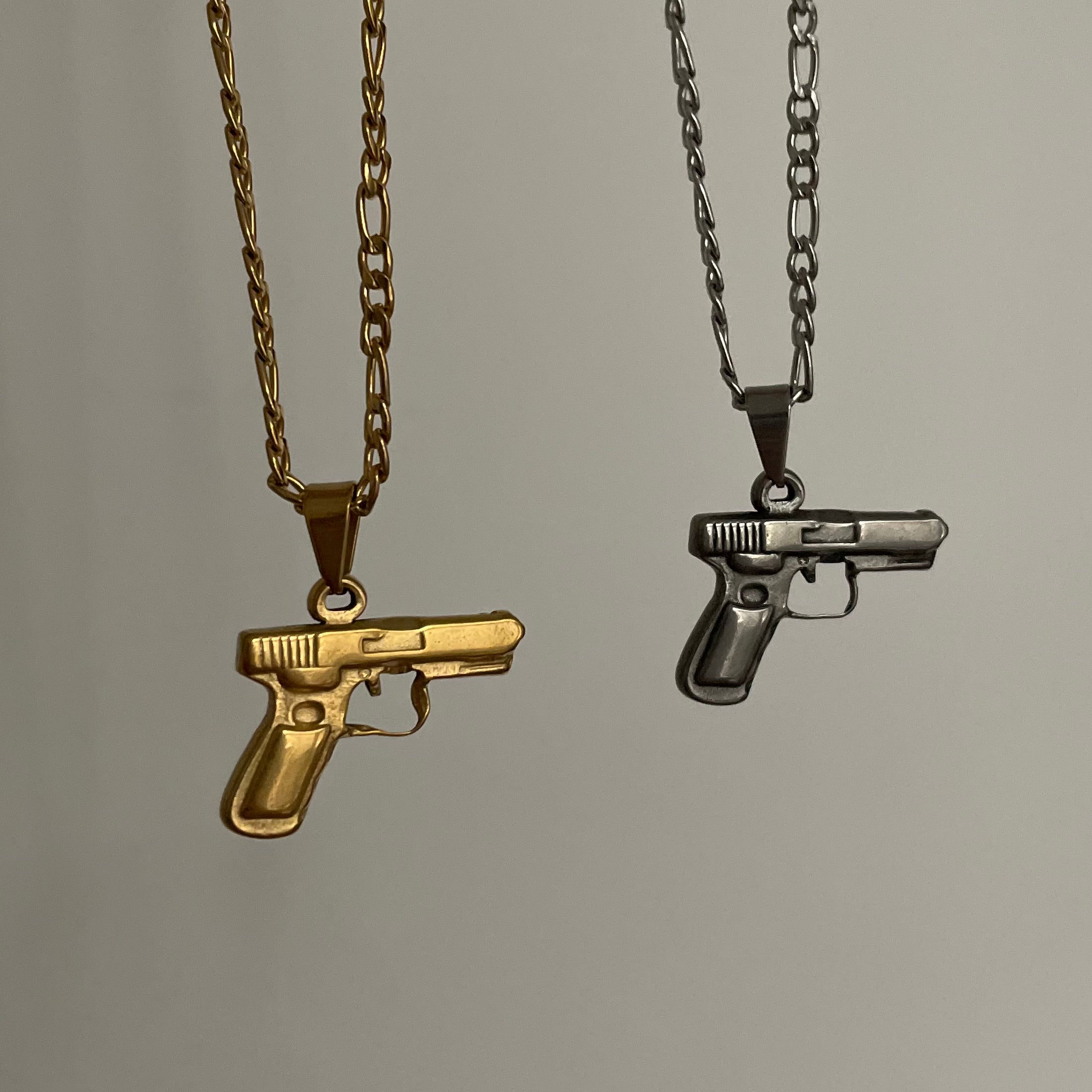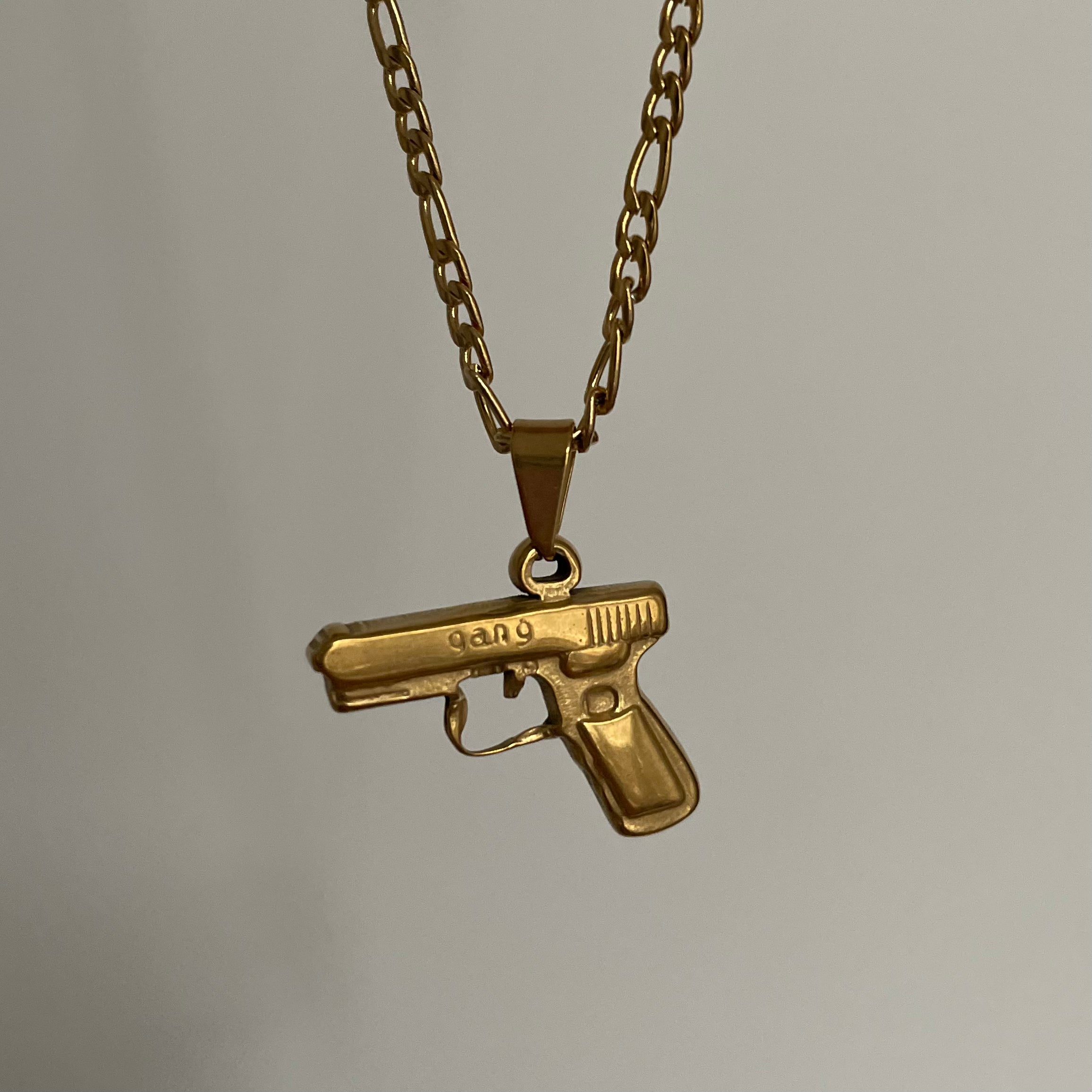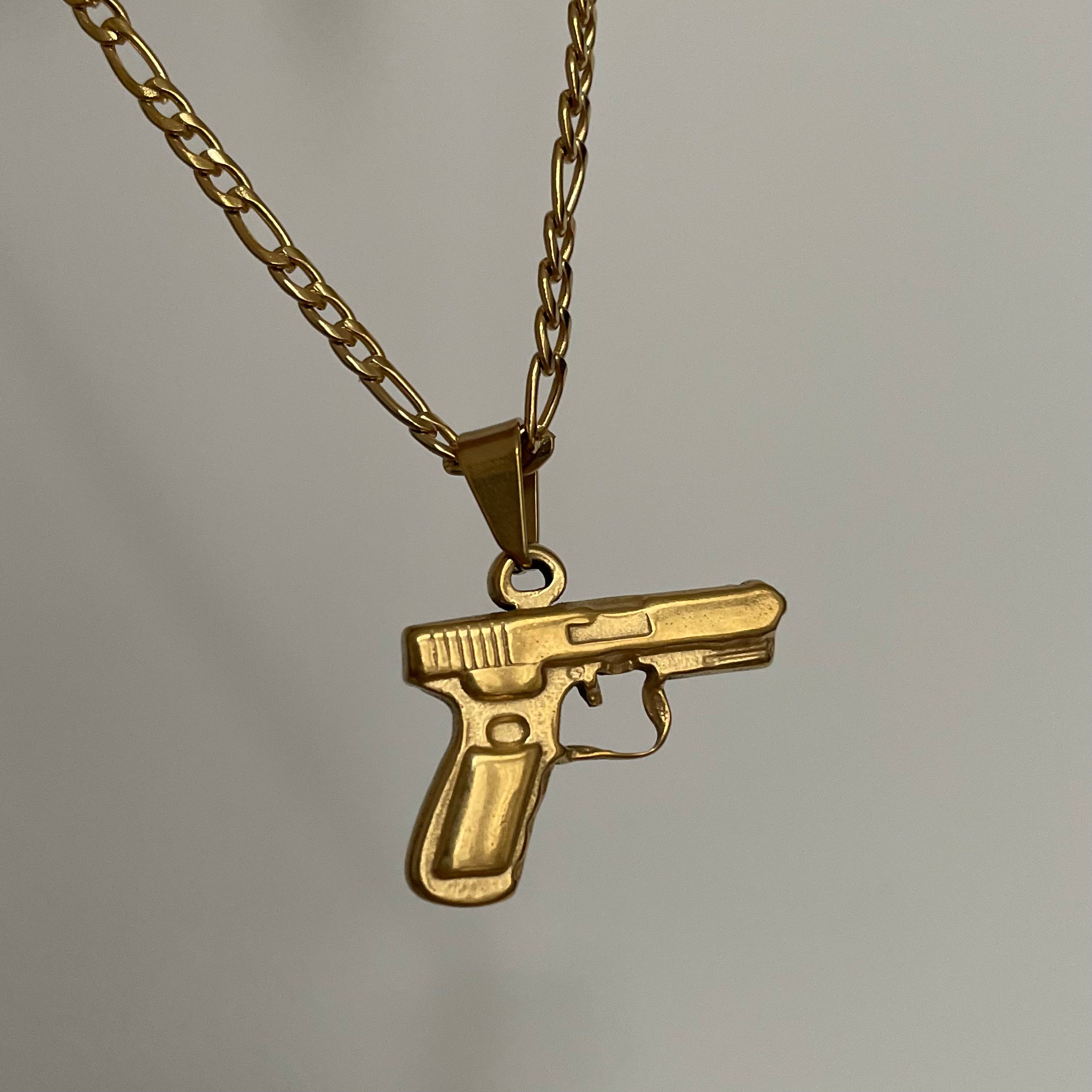 GUN Halskette - 18K Gold & Silber Pistolenanhänger