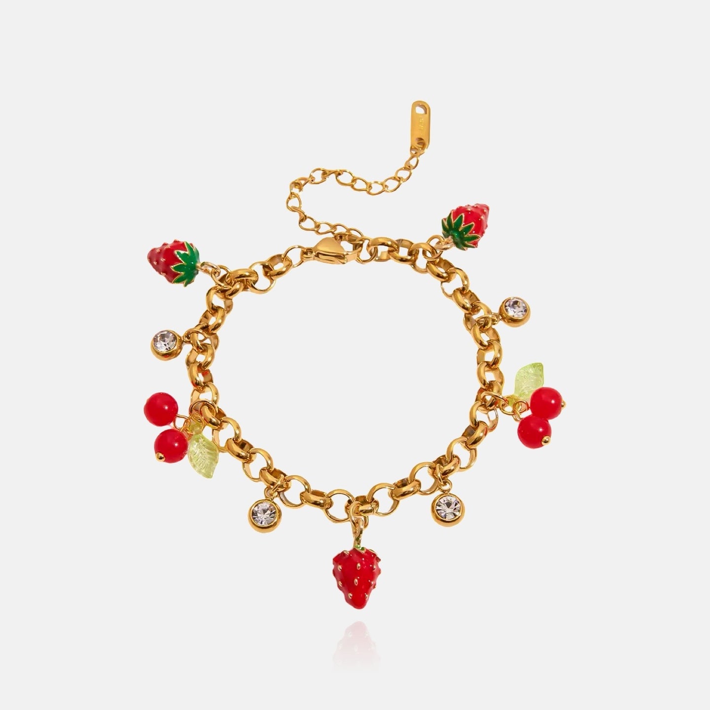 Unser elegantes, 100 % wasserdichtes Beeren- und Kirscharmband schmiegt sich perfekt an Ihr Handgelenk und sorgt für einen wunderschönen Look. Es ist in zwei Ausführungen erhältlich, Gold und Silber, und verfügt über wunderschöne Perlen und Fruchtanhänger.