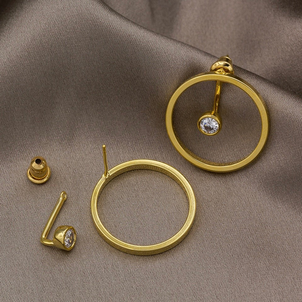 Genießen Sie unzählige Komplimente für unsere wunderschönen, wasserfesten Ohrringe in Orbit-Form . Diese ausdrucksstarken und zugleich zarten Ohrringe schmiegen sich an Ihre Ohren und verleihen Ihnen einen wunderschönen und einzigartigen Look – wie ein echter Star auf dem roten Teppich. Das originelle Design besticht durch einen Edelstein, der von einem Kreis umgeben ist. Dieses elegante Schmuckstück eignet sich perfekt für jeden Tag, aber auch für festliche Anlässe wie Hochzeiten und ist Teil unserer von Brautmode inspirierten Kollektion. Die Ohrringe sind hypoallergen und wasserfest.