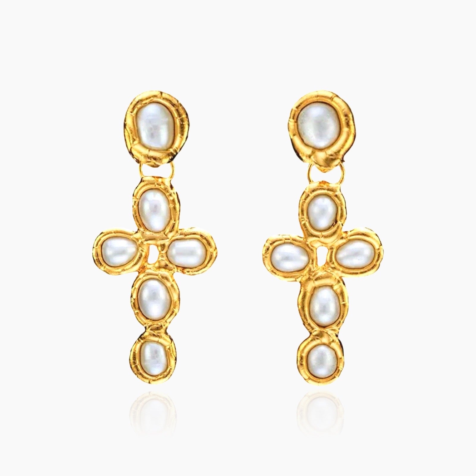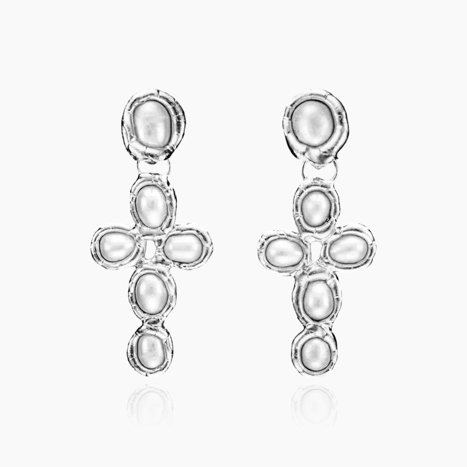Geschmolzene Kreuzohrringe - Naturperle