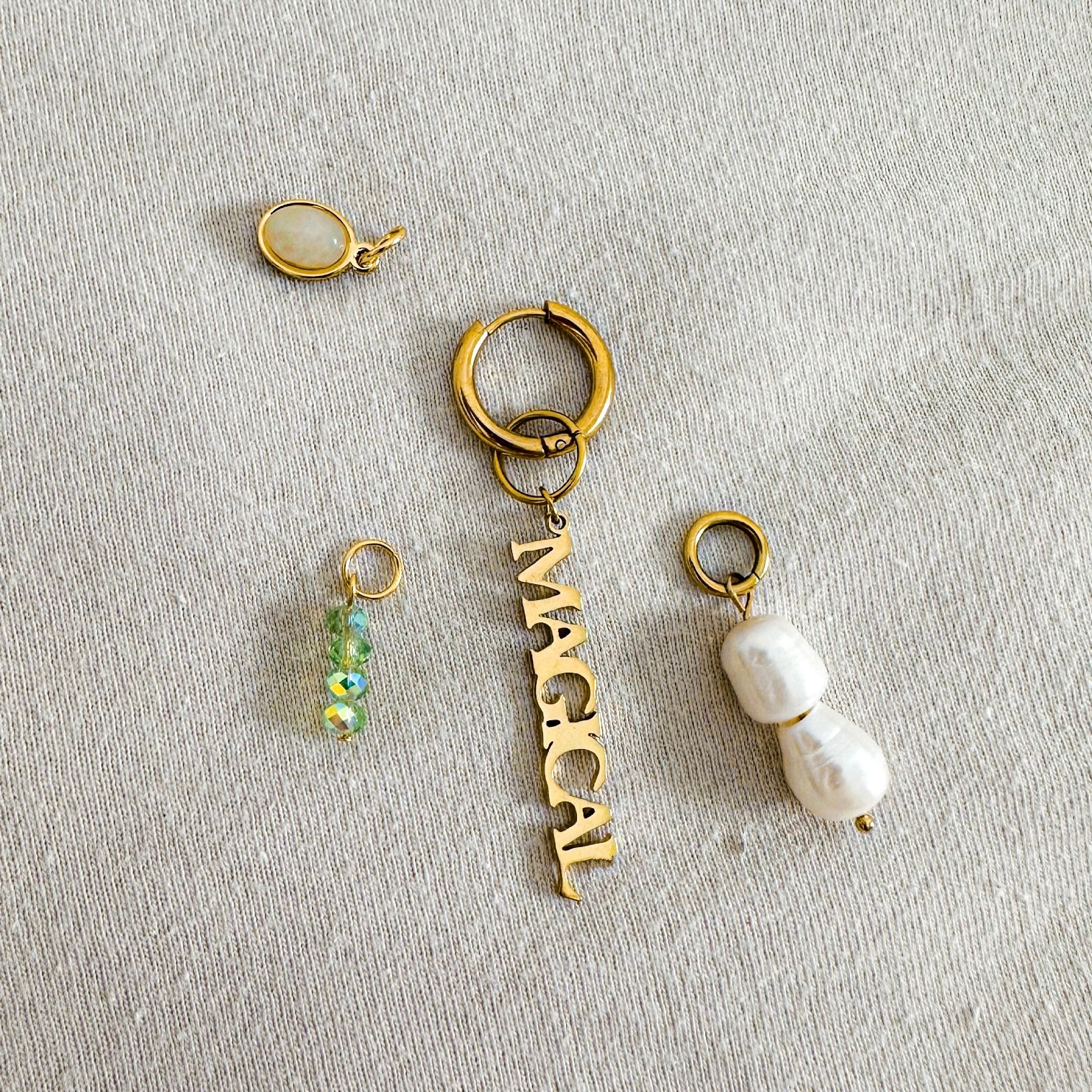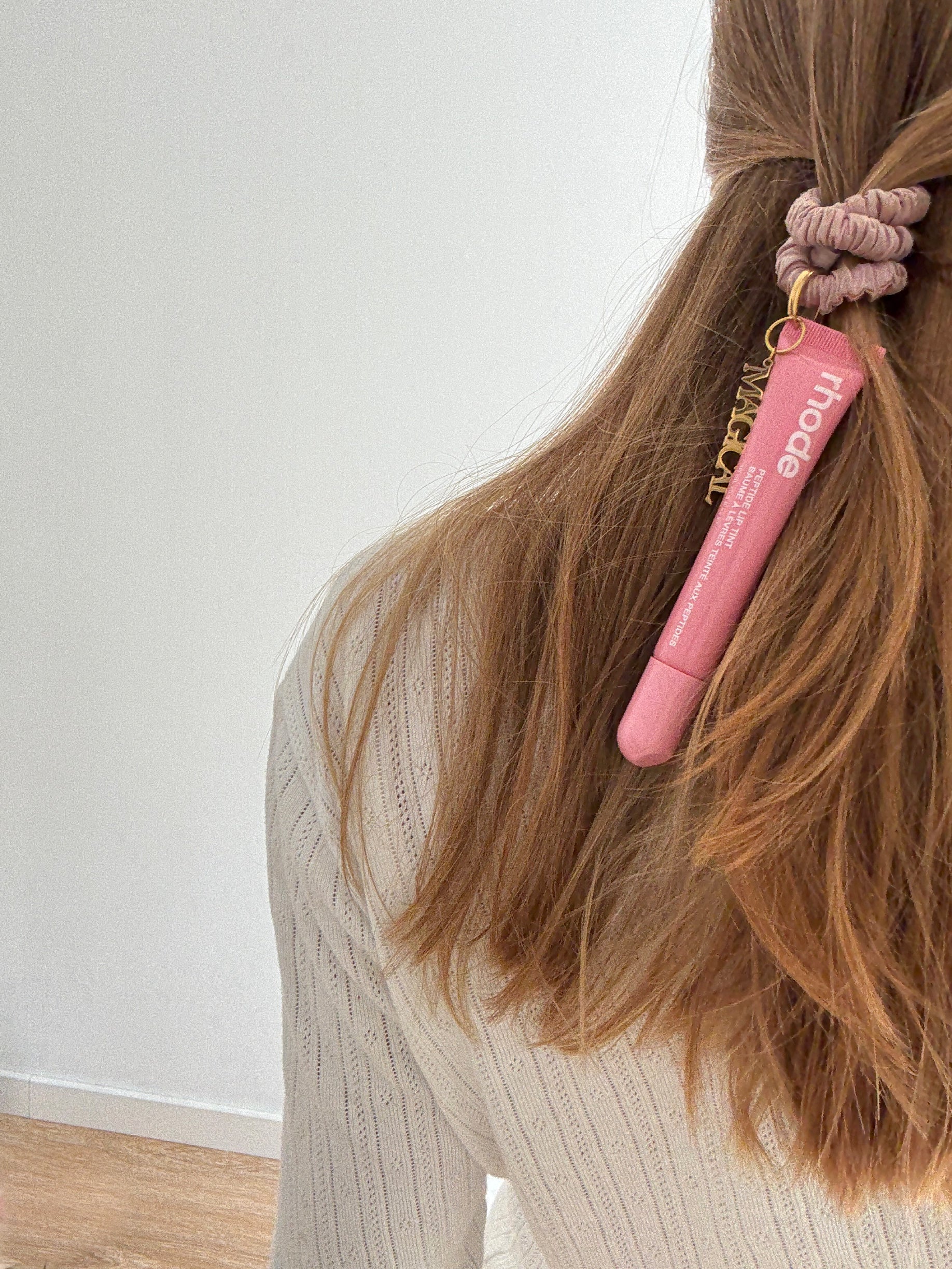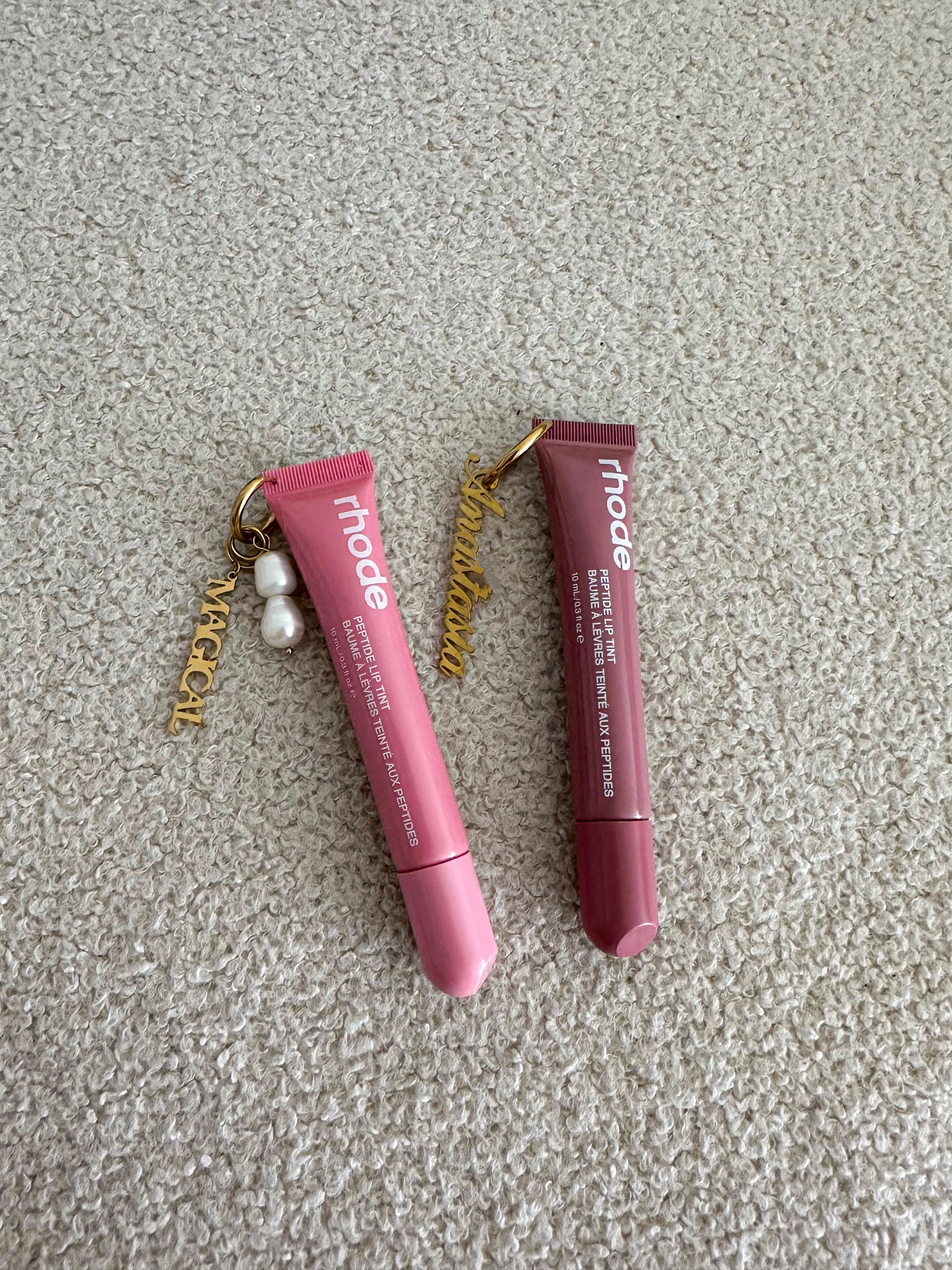 The hottest product of the year is here! Personalize your favorite lip gloss or cream with our unique and iconic custom name charms. Our original idea, which instantly became viral online, is simple and cute: we are sending you a little piercing gun together with your custom text charm. You can easily make a hole and attach the ring to any beauty product. You can also add any charms you like to personalize your lip tint even more. Suitable for all beauty product tubes and packaging for example Rhode and Summer Fridays.