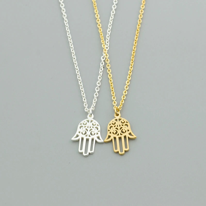 The Hamsa is a palm-shaped amulet popular throughout North Africa and in the Middle East. Depicting the open right hand, an image recognized and used as a sign of protection in many times throughout history, the hamsa has been traditionally believed to provide defense against the evil eye. The Hand also represents blessings, power and strength. Perfect for layering, this necklace will look beautiful when layered up with any chain or pendant. And the best part? It is 100% waterproof & hypoallergenic!
