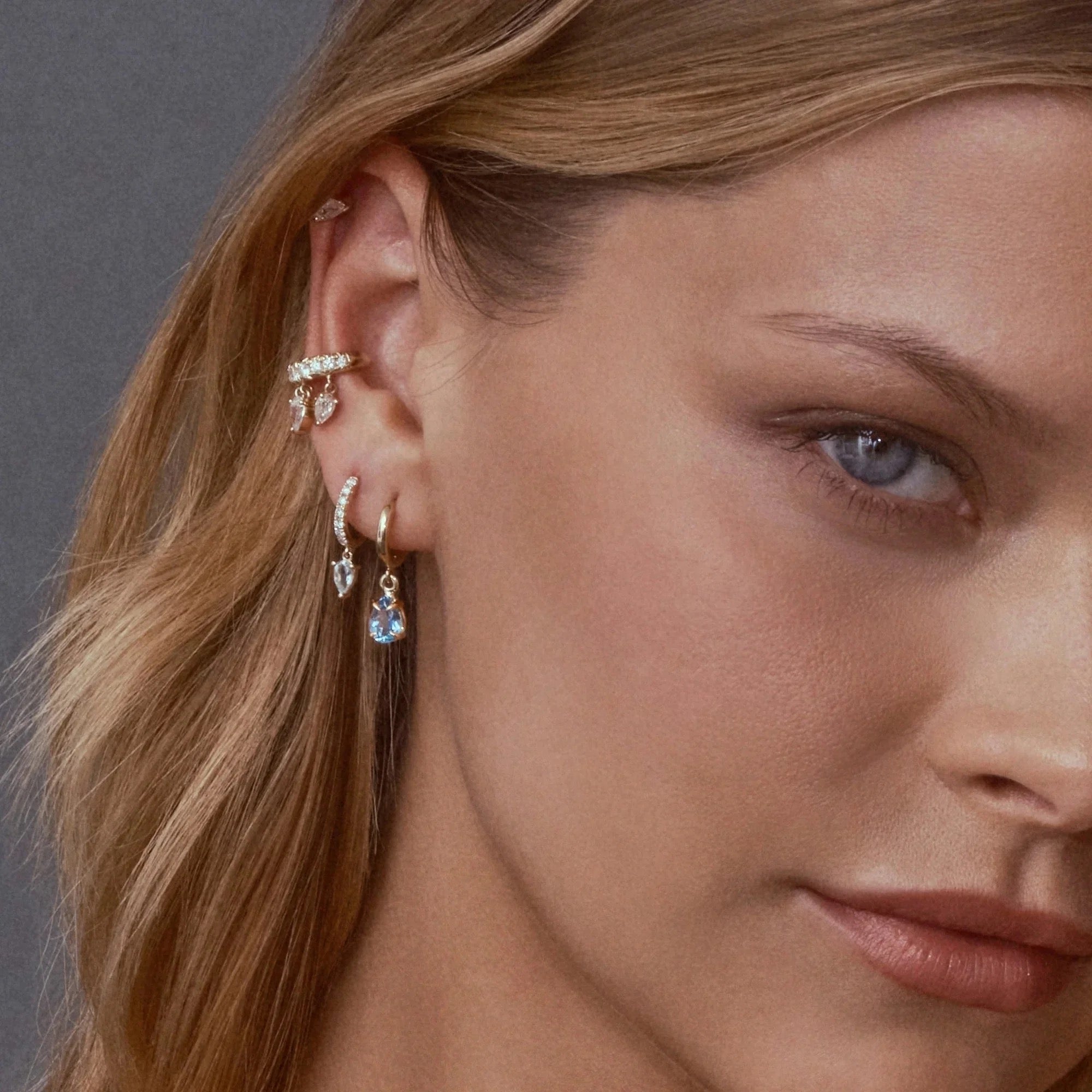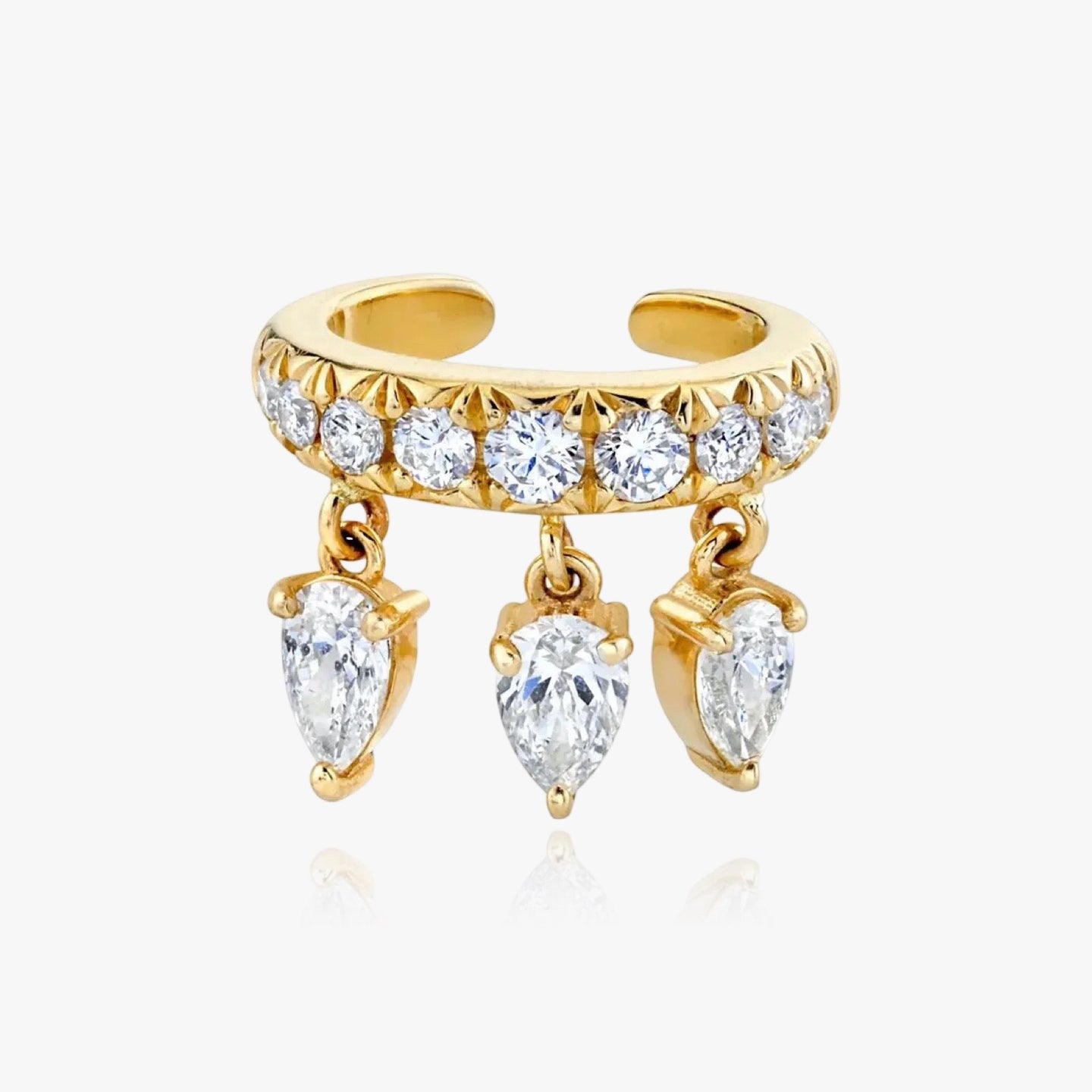 Pear Cut Crystal Cuff Earring: Dainty Pave Cuff
