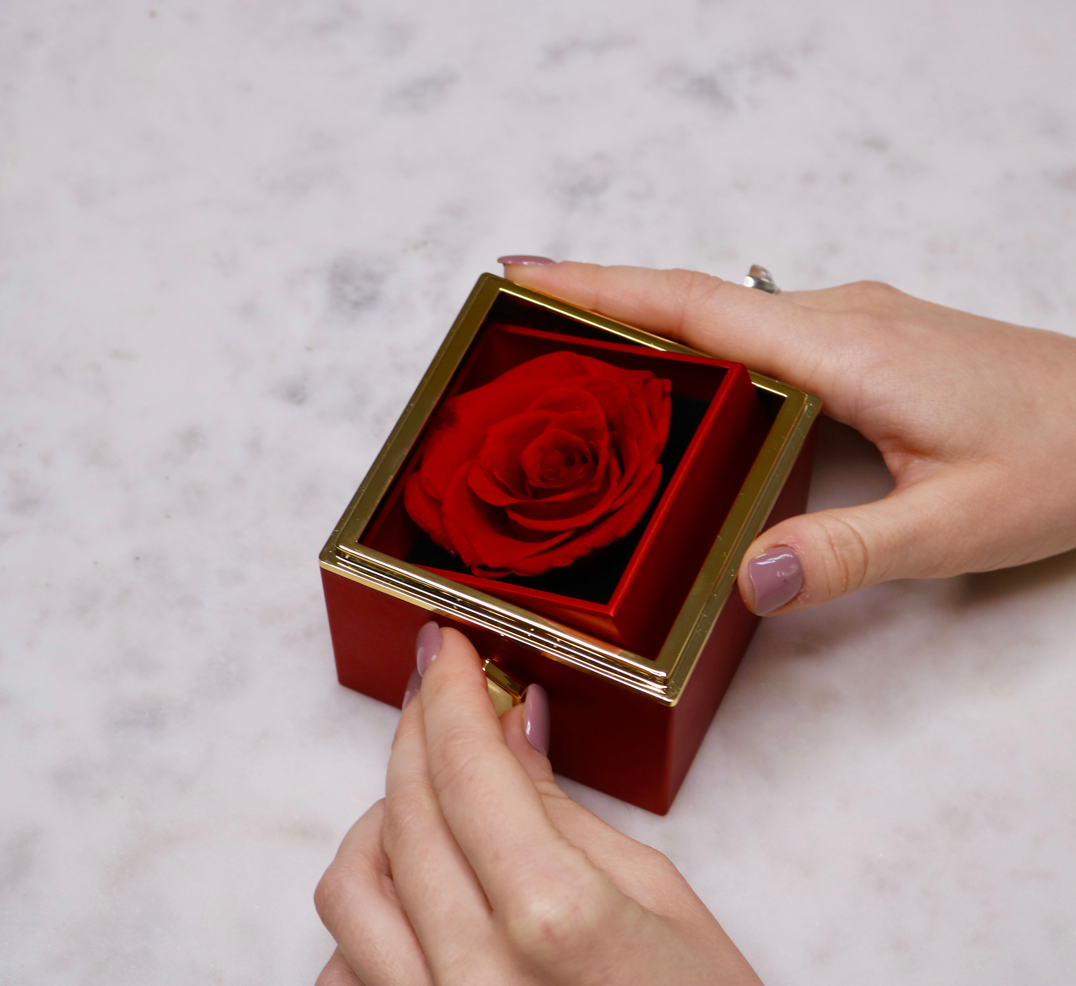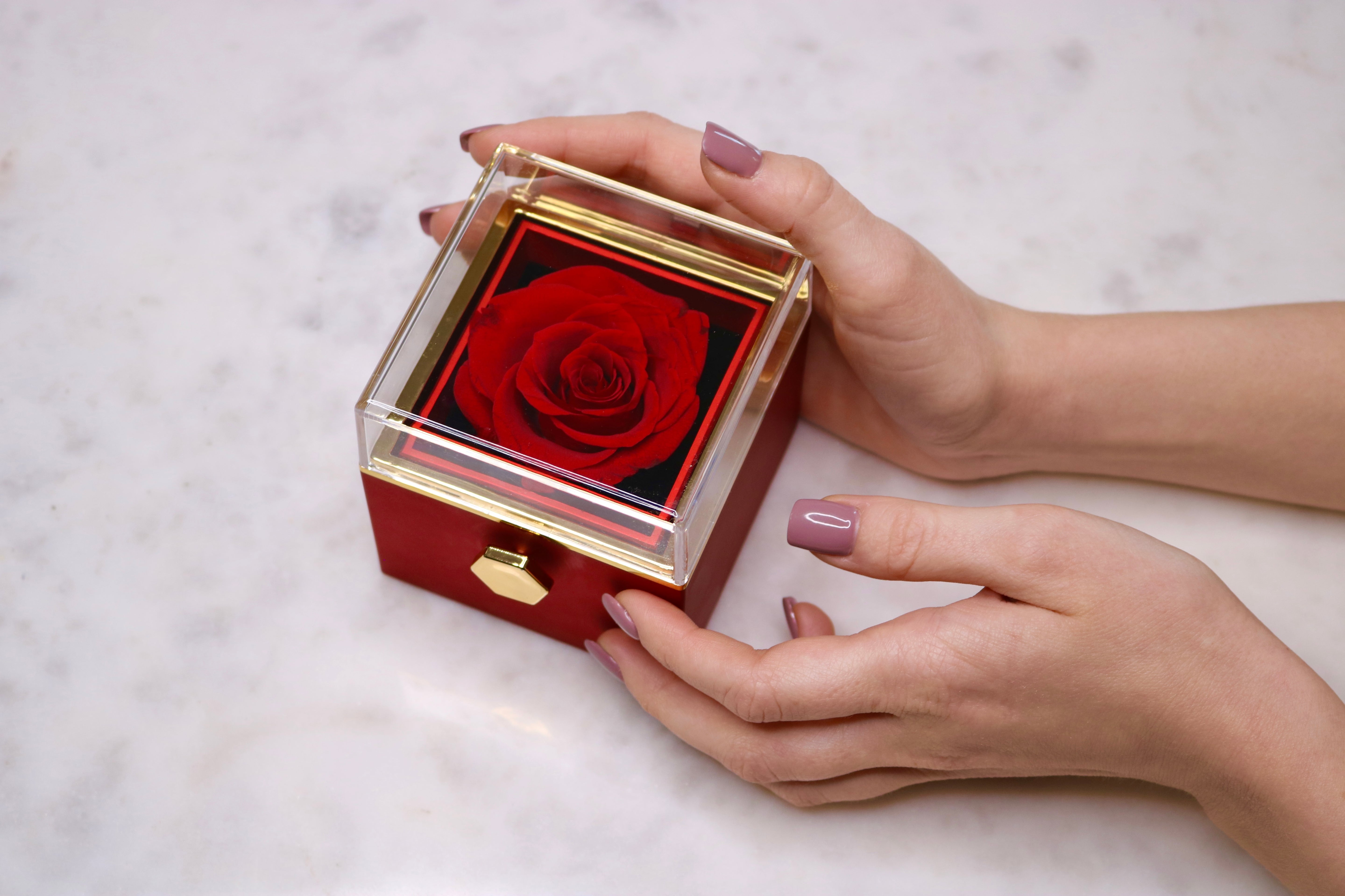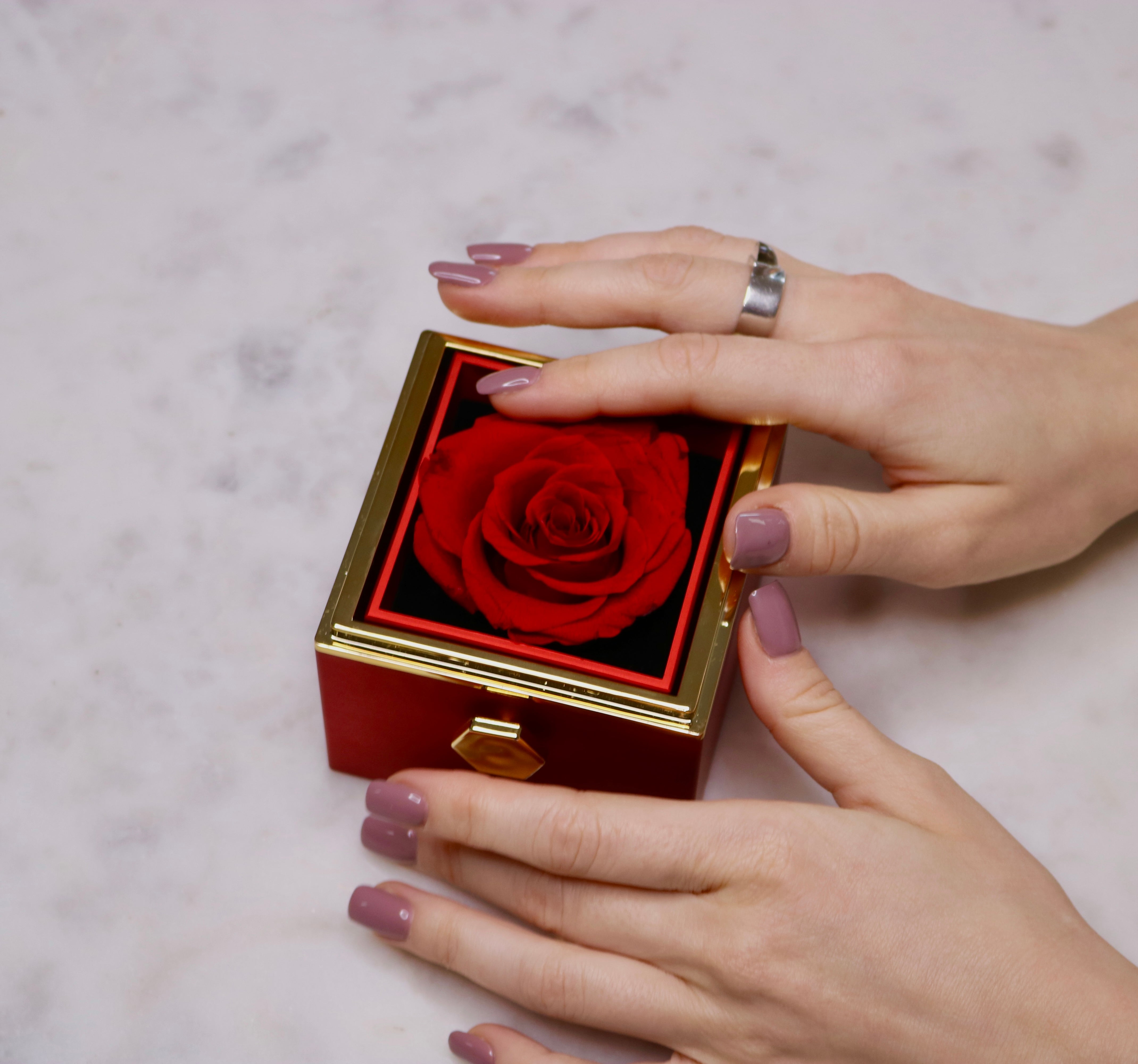 The timeless rose box, which includes a bespoke necklace, is a present that is meant to be forever. A real rose is treated with a patented technology so its authentic beauty never fades, symbolizing eternal love and affection.
