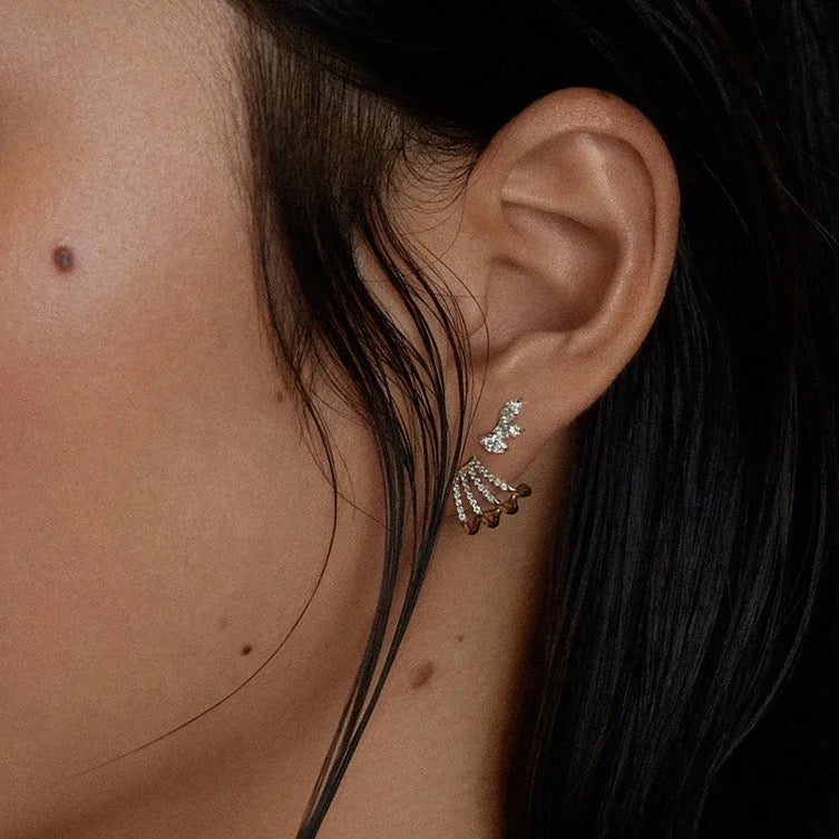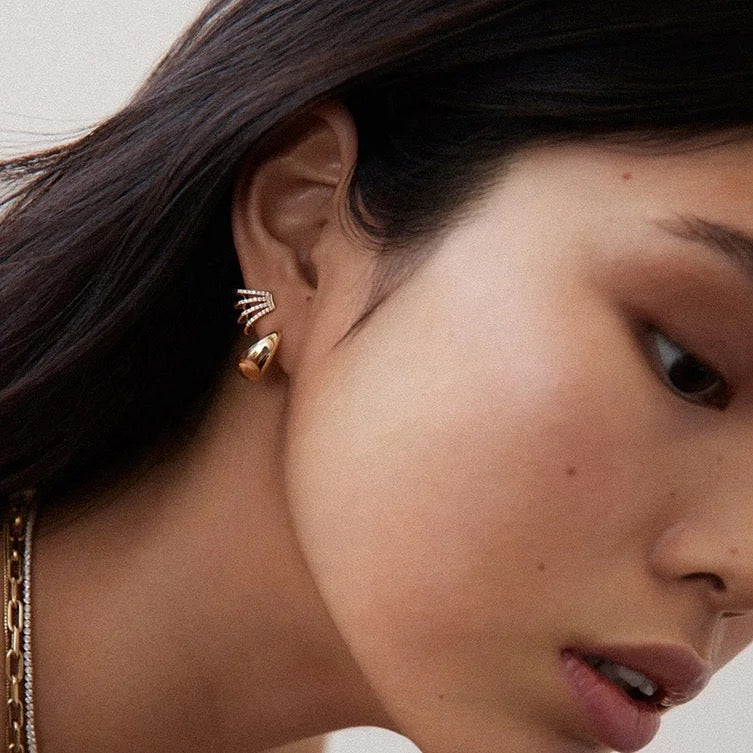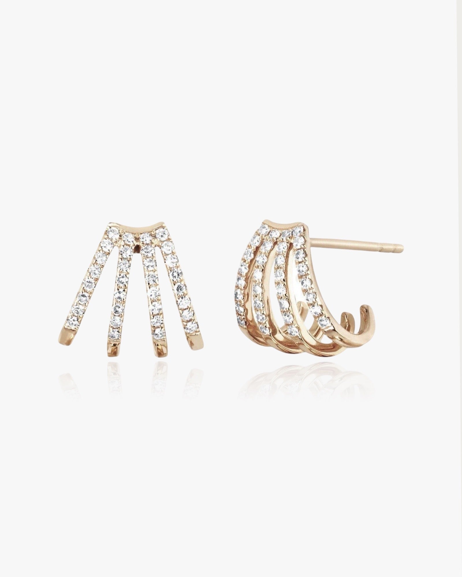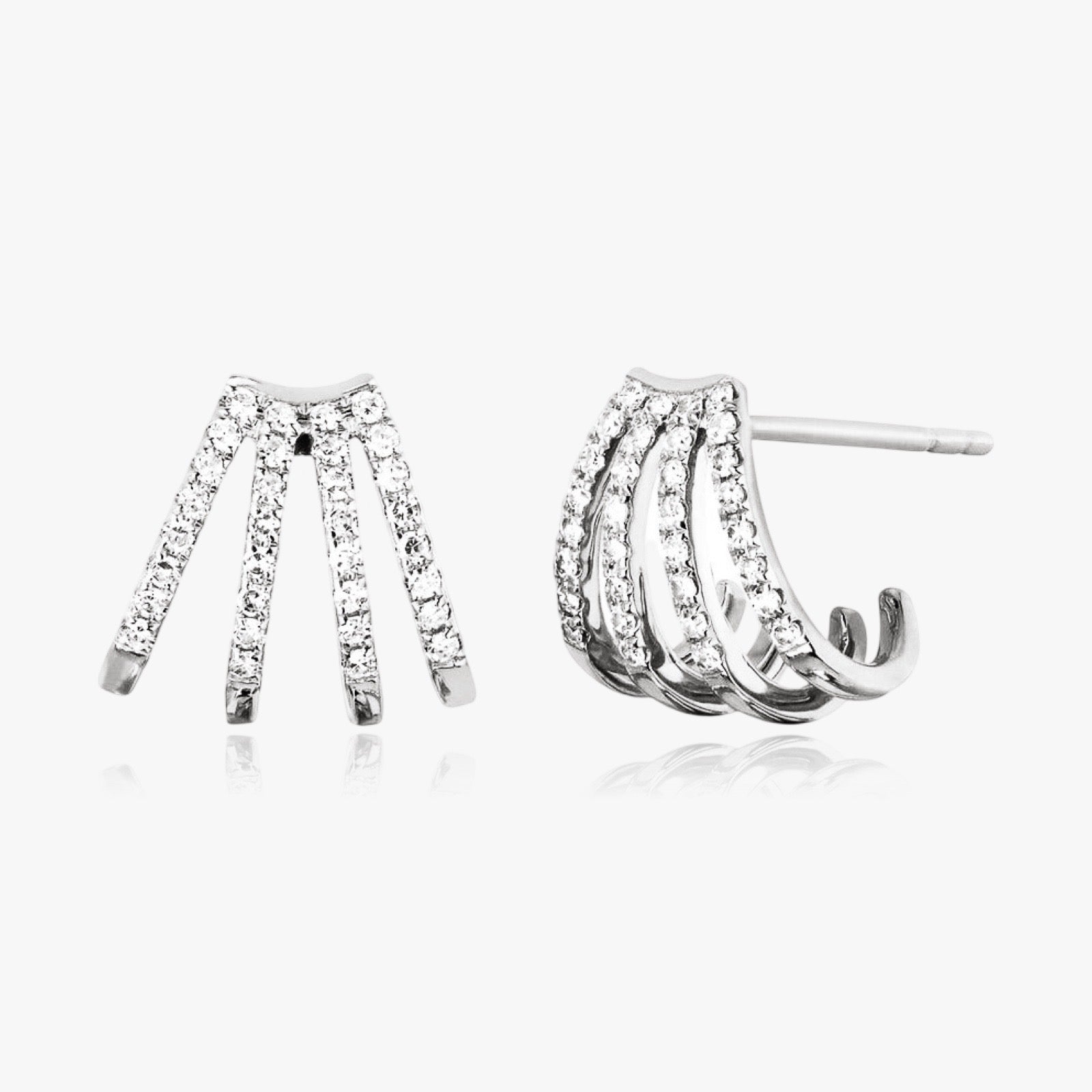 Les boucles d'oreilles Multi Huggie sont composées de 4 rangées incurvées de pavé scintillant. cristaux. Ces boucles d'oreilles puces sont finies à la main. créer l'illusion de 4 cerceaux dans un style surélevé. Portez-les seuls ou combinez-les les menottés pour créer d'innombrables nouveaux looks de fêtes d'oreilles. Nos boucles d'oreilles Multi Hoop sont minimalistes, mais aussi audacieuses et élégantes.