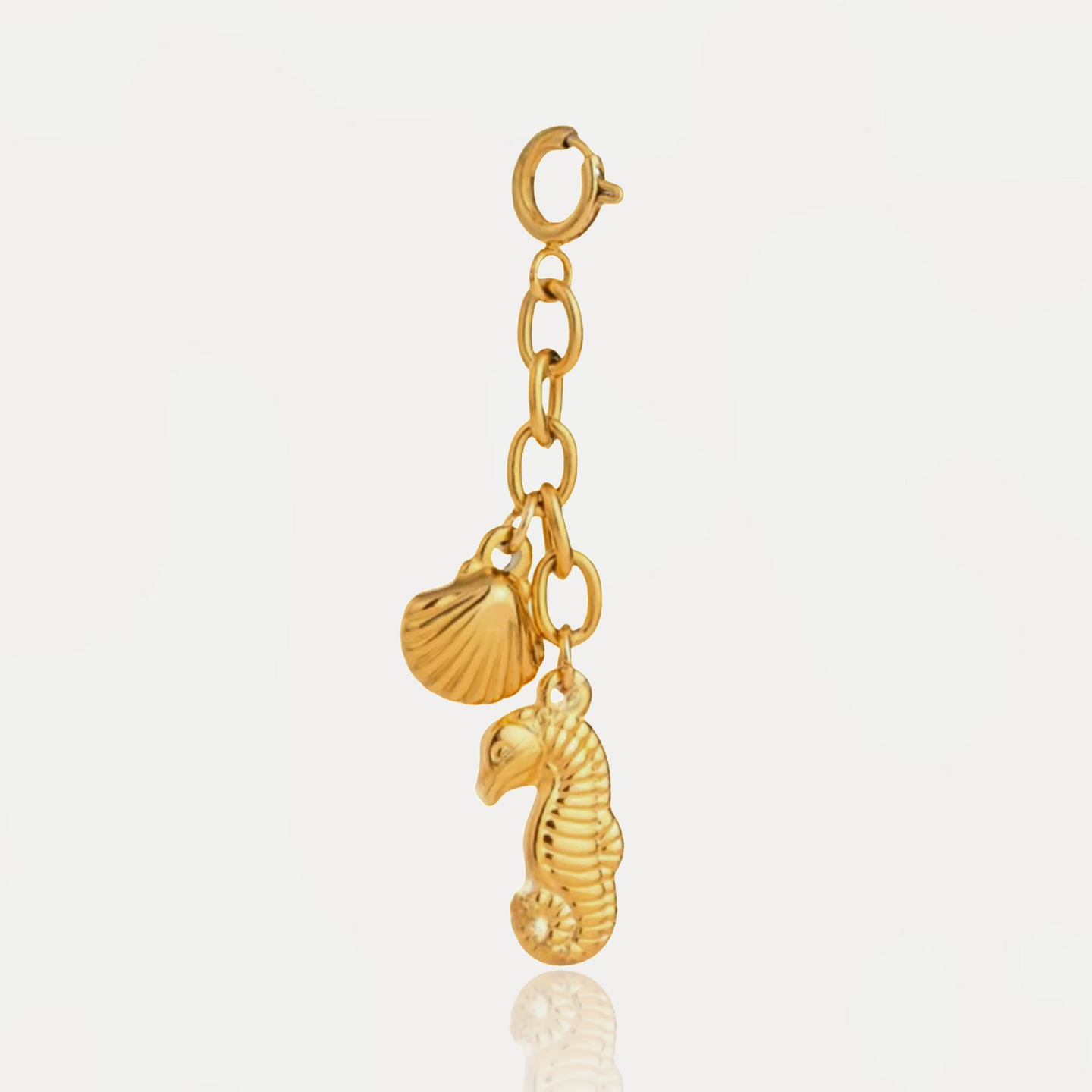 La plus belle chaînette de maillots de bain est arrivée ! Notre breloque hippocampe faite main célèbre la positivité et la joie. Attachez-la facilement à la ficelle de votre haut ou bas de bikini pour sublimer votre look. Choisissez l'un des deux fermoirs ou fixez-la sans. fermoir. Ce charme de plage est complètement étanche et est Fabriqué en acier inoxydable de première qualité.