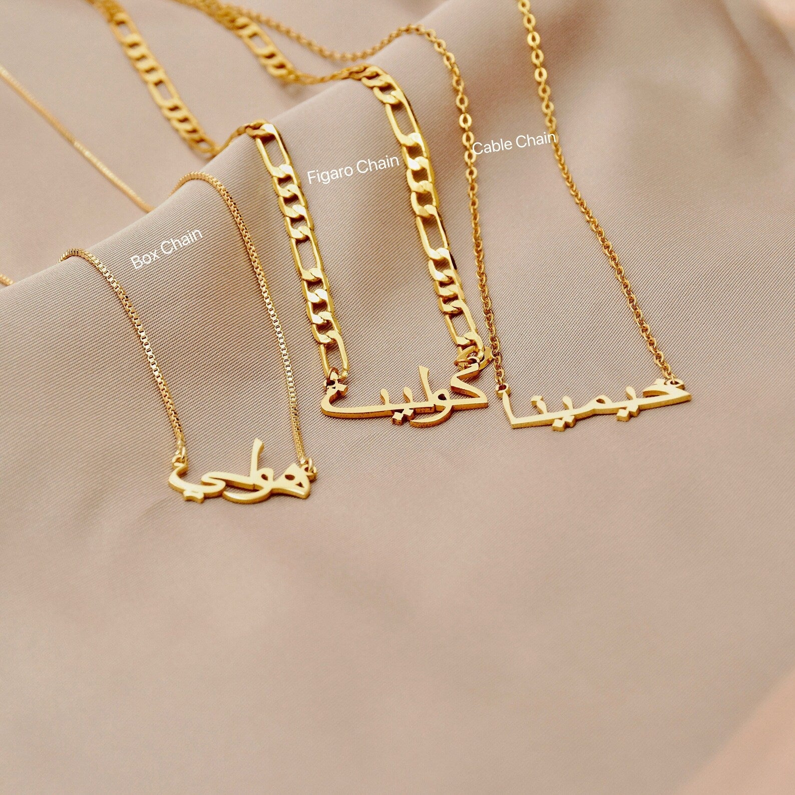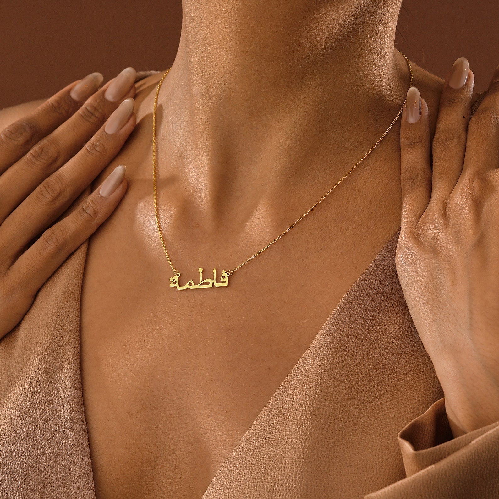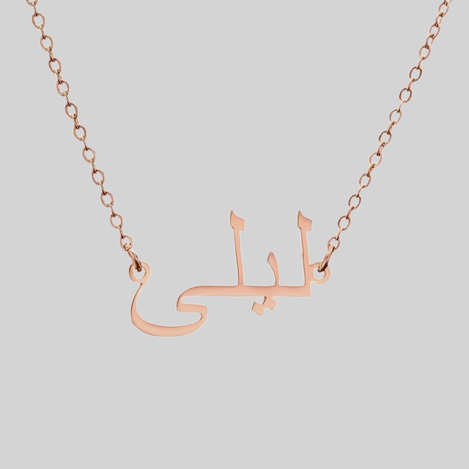 Créez votre collier personnalisé et unique en langue arabe, disponible en finition or, argent et or rose. Un style intemporel.