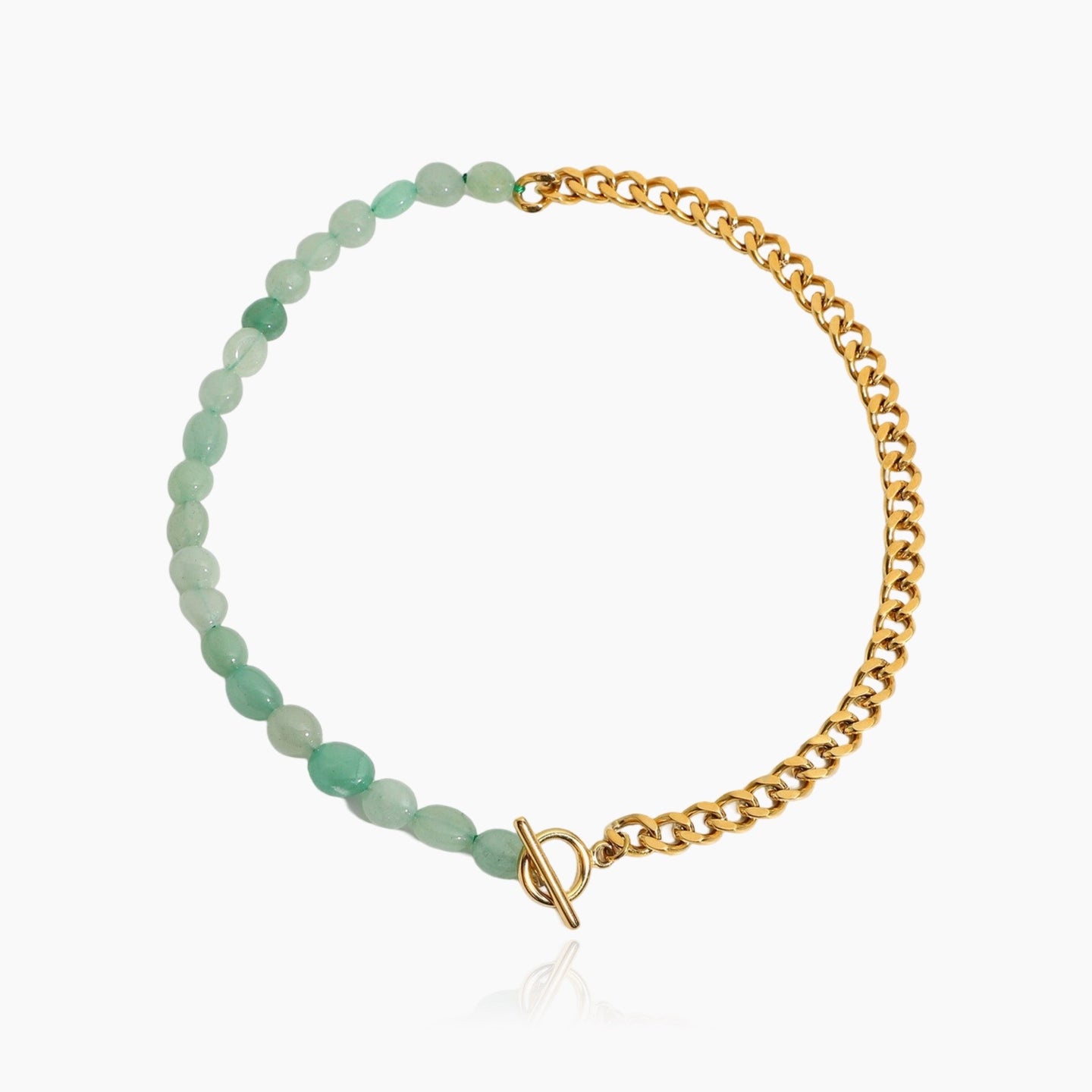 Notre magnifique collier en pierre précieuse naturelle avec Une fermeture en T et une chaîne cubaine vous seront utiles. Pour rester calme et serein(e), et vous concentrer sur l'essentiel. Nous en sommes certains : ce bijou élégant deviendra votre collier préféré dès que vous le verrez. Il est disponible en 3 couleurs : quartz rose, vert jade et cristal brun. Chaque Ce collier est absolument unique car aucune pierre n'est identique à une autre. Et le meilleur dans tout ça ? C'est… 100% étanche, car il est fabriqué en acier inoxydable plaqué or 18 carats.