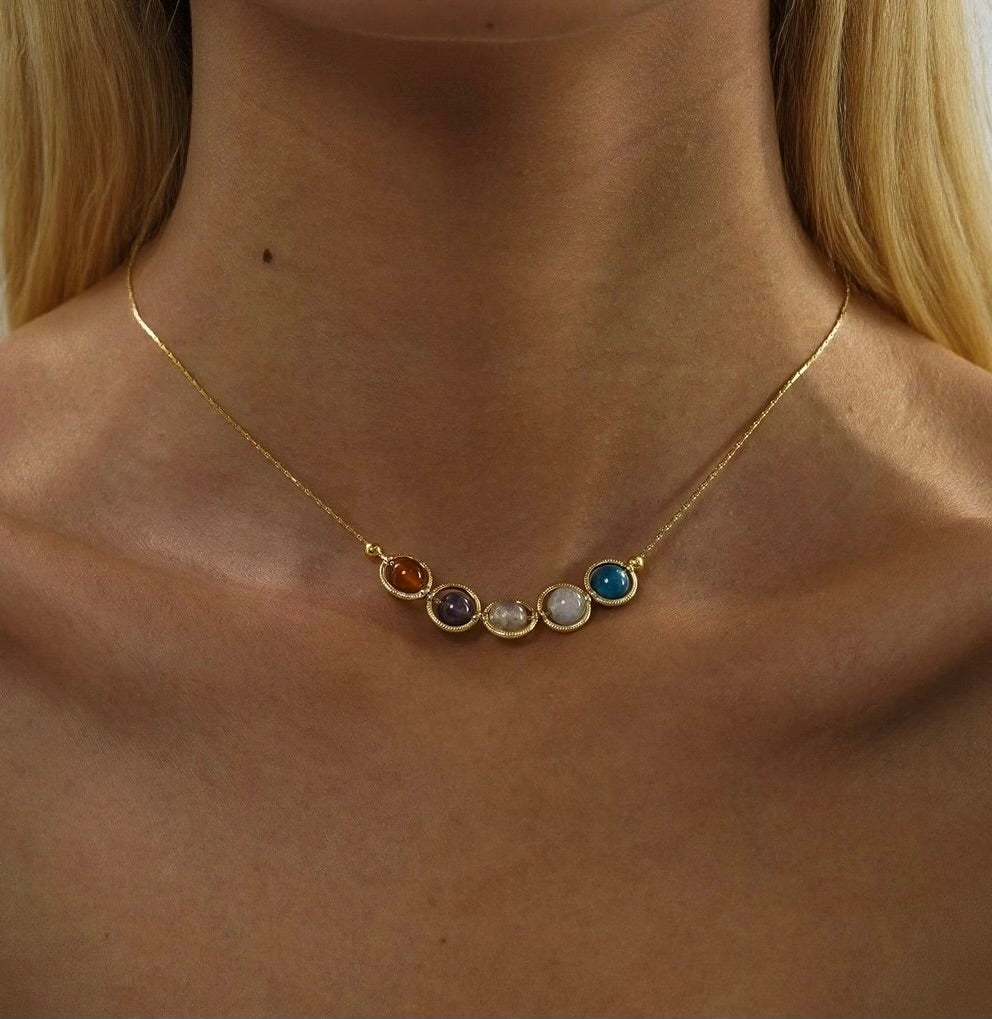 Verras jezelf met deze geboortesteenketting, versierd met 5 authentieke edelstenen met prachtige betekenissen. Bij de ketting wordt een kaartje meegeleverd met uitleg over de betekenis van elke geboortesteen. Klaar om cadeau te geven!