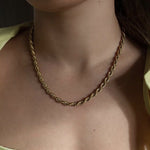 Onze glanzende, gedraaide ketting ligt perfect langs je halslijn en creëert de meest gestroomlijnde looks. Deze basisketting van 50 cm is perfect om in laagjes te dragen en ziet er prachtig uit als je hem met een hanger combineert. En het beste deel? Hij is 100% waterdicht, omdat hij is gemaakt van 18K verguld roestvrij staal.