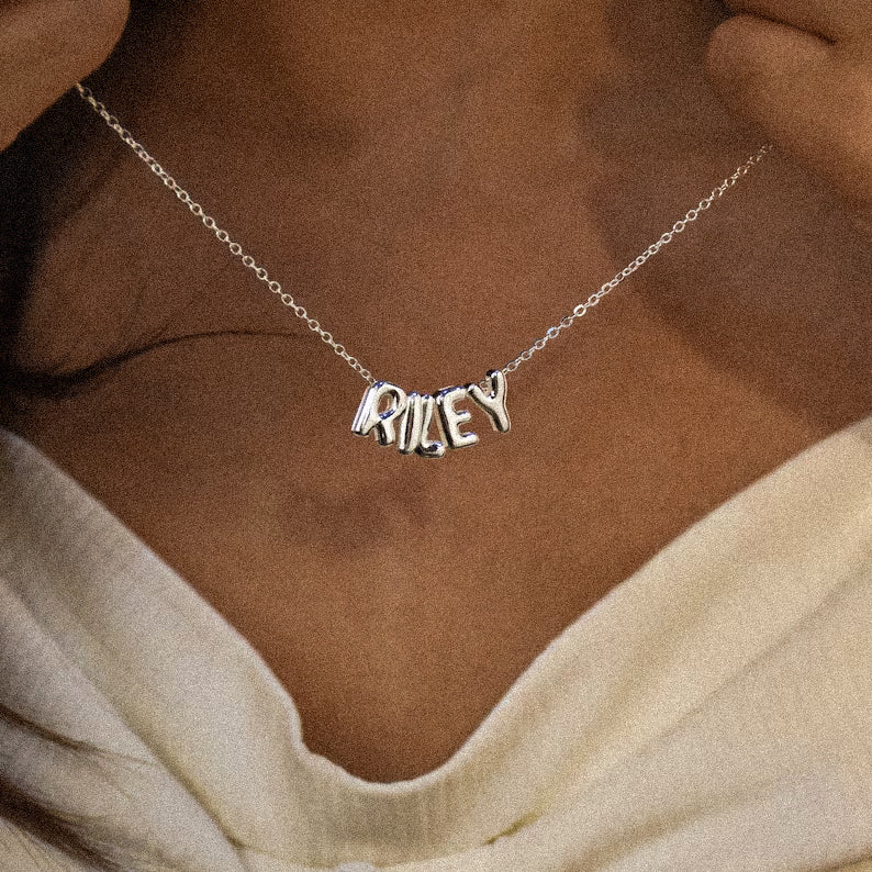 Elke 3D-ballonnaamketting is echt uniek, persoonlijk en met de hand gemaakt van waterbestendige, hoogwaardige materialen. Maak er je kenmerkende bubbelnaamketting voor elke dag van of geef hem als een onvergetelijk persoonlijk cadeau aan je vriendin, dochter of moeder. Voeg je naam toe of die van je geliefde, familielid of beste vriendin. Deze gepersonaliseerde bubbelletterketting is perfect om te combineren en voegt een kenmerkend element toe aan al je outfits.