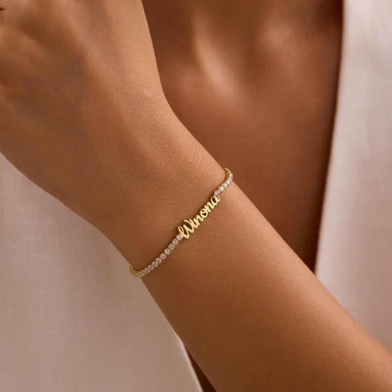 Elke tennisarmband met naam is echt uniek, persoonlijk en met de hand gemaakt van waterbestendige, hoogwaardige materialen. Maak er je favoriete tennisarmband voor elke dag van of geef hem als gepersonaliseerd cadeau voor een verjaardag of jubileum aan iemand speciaal. Voeg je naam toe of die van je geliefde, familielid of beste vriend(in). Deze armband met zirkoniakristallen is perfect om te combineren en voegt een uniek element toe aan al je outfits.