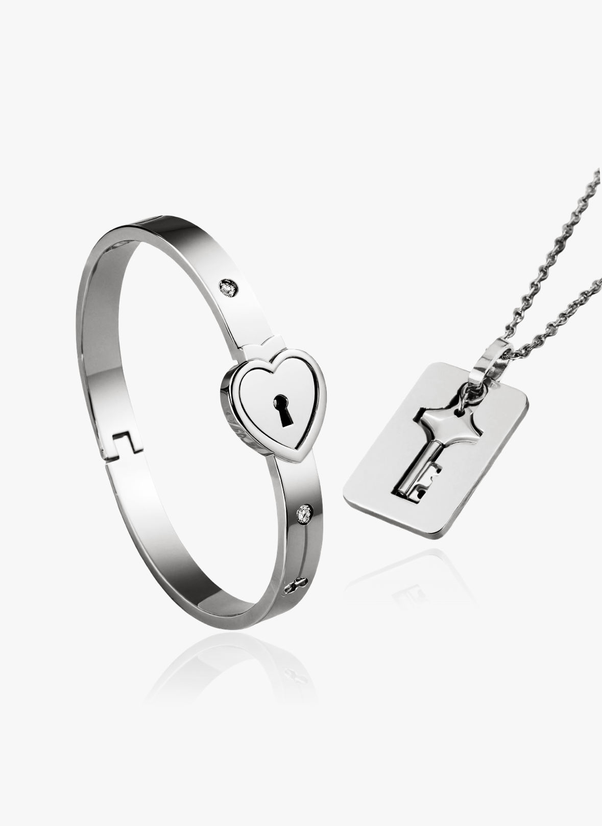 • Je ontvangt 2 items, een slotarmband en een sleutelketting