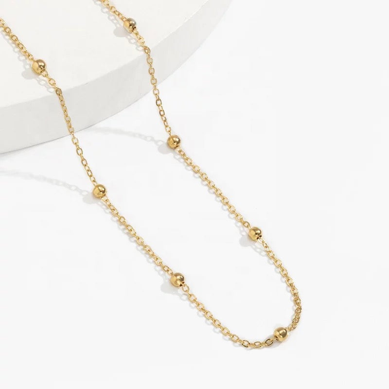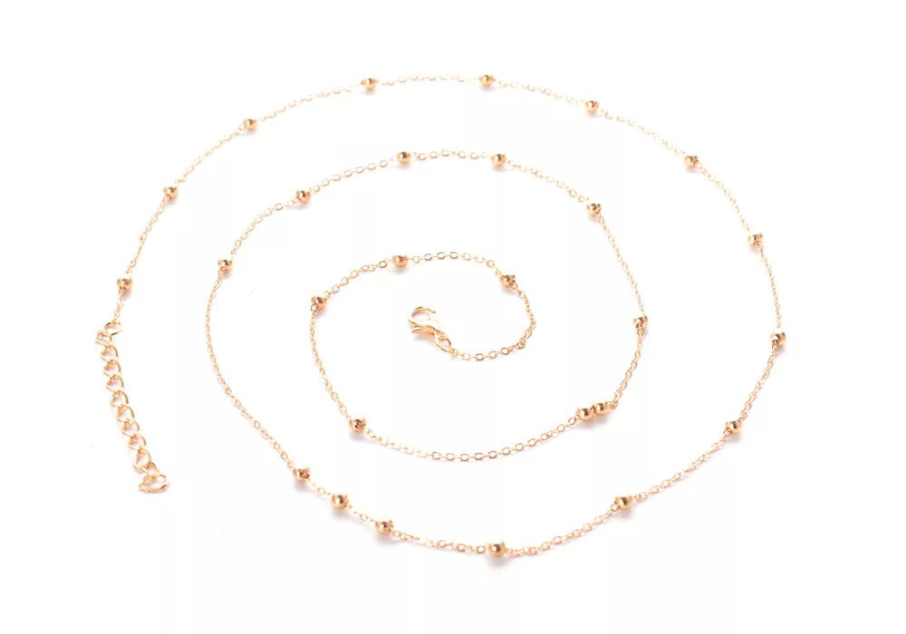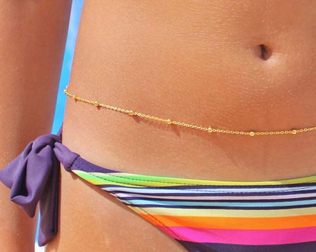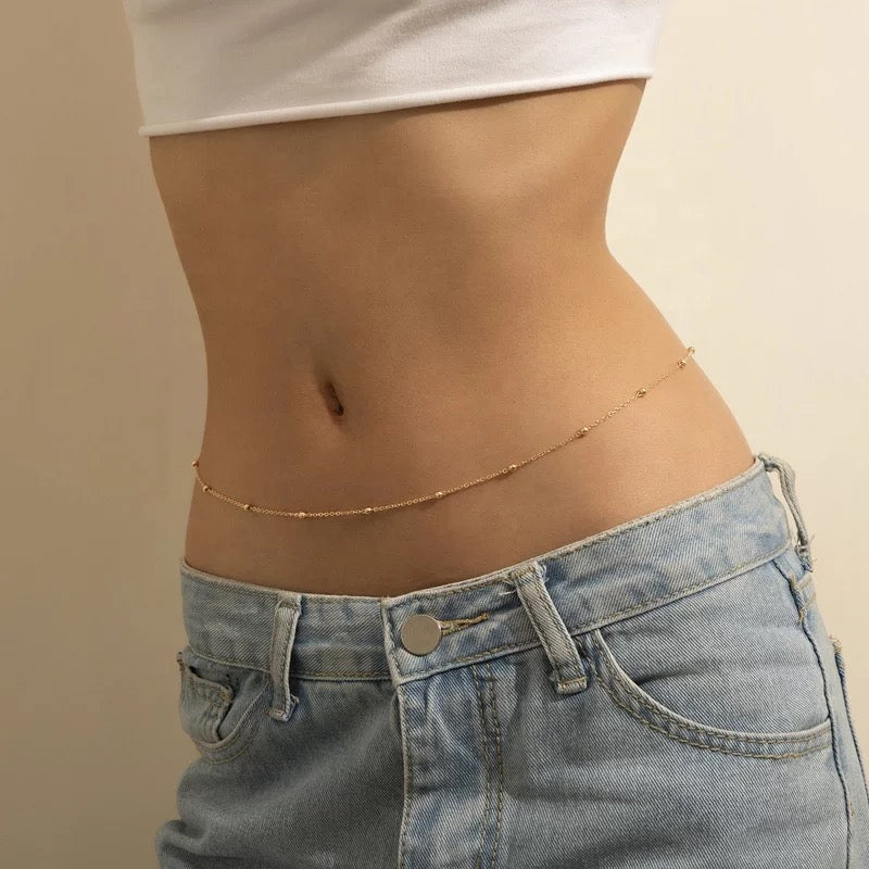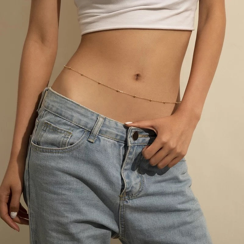 Our stylish and elegant dainty belly chain has a shimmering 18K gold plated chain with beads and can be adjusted in size. It will look amazing with any crop tops or swimwear and instantly elevate your look. It can be also worn on top of the clothes to add the 2000's-inspired twist to your outfit. It will lie perfectly across your waist and become your favorite summer companion.
