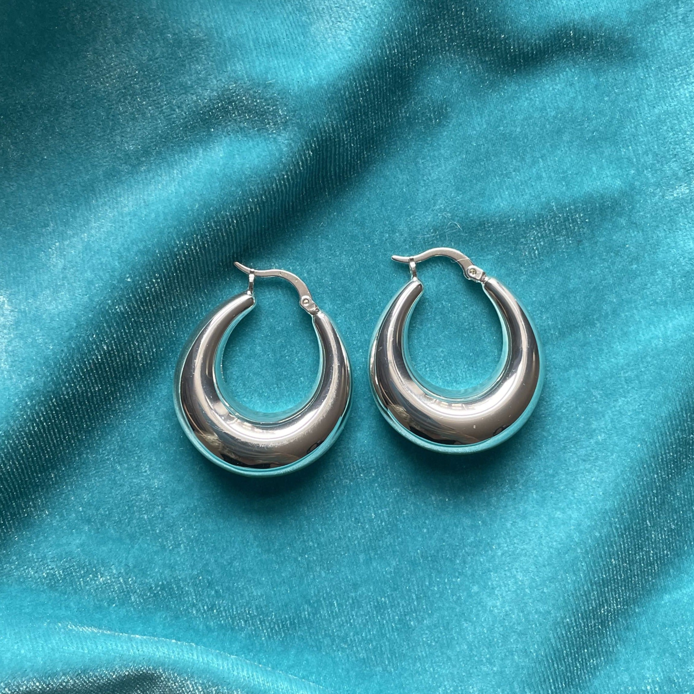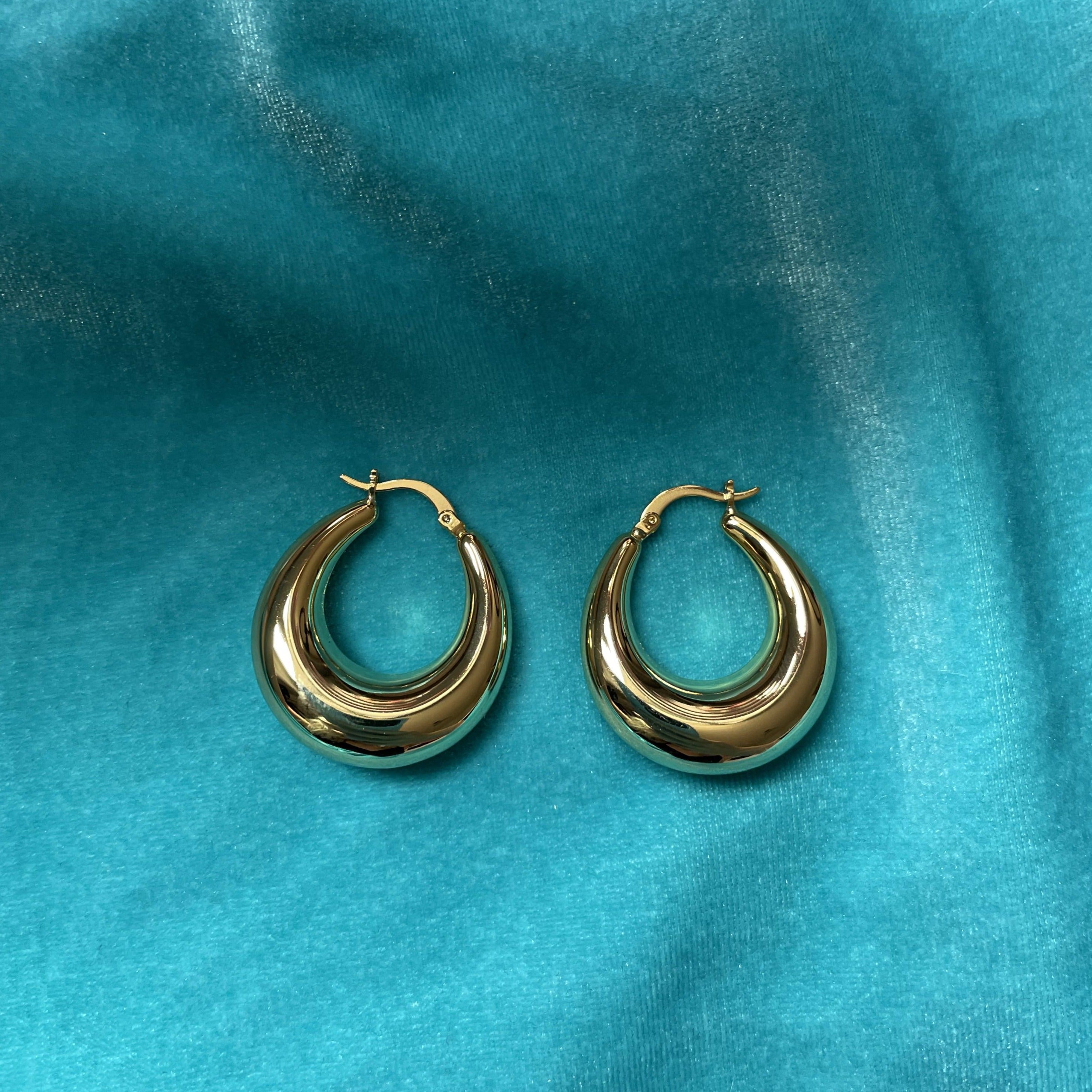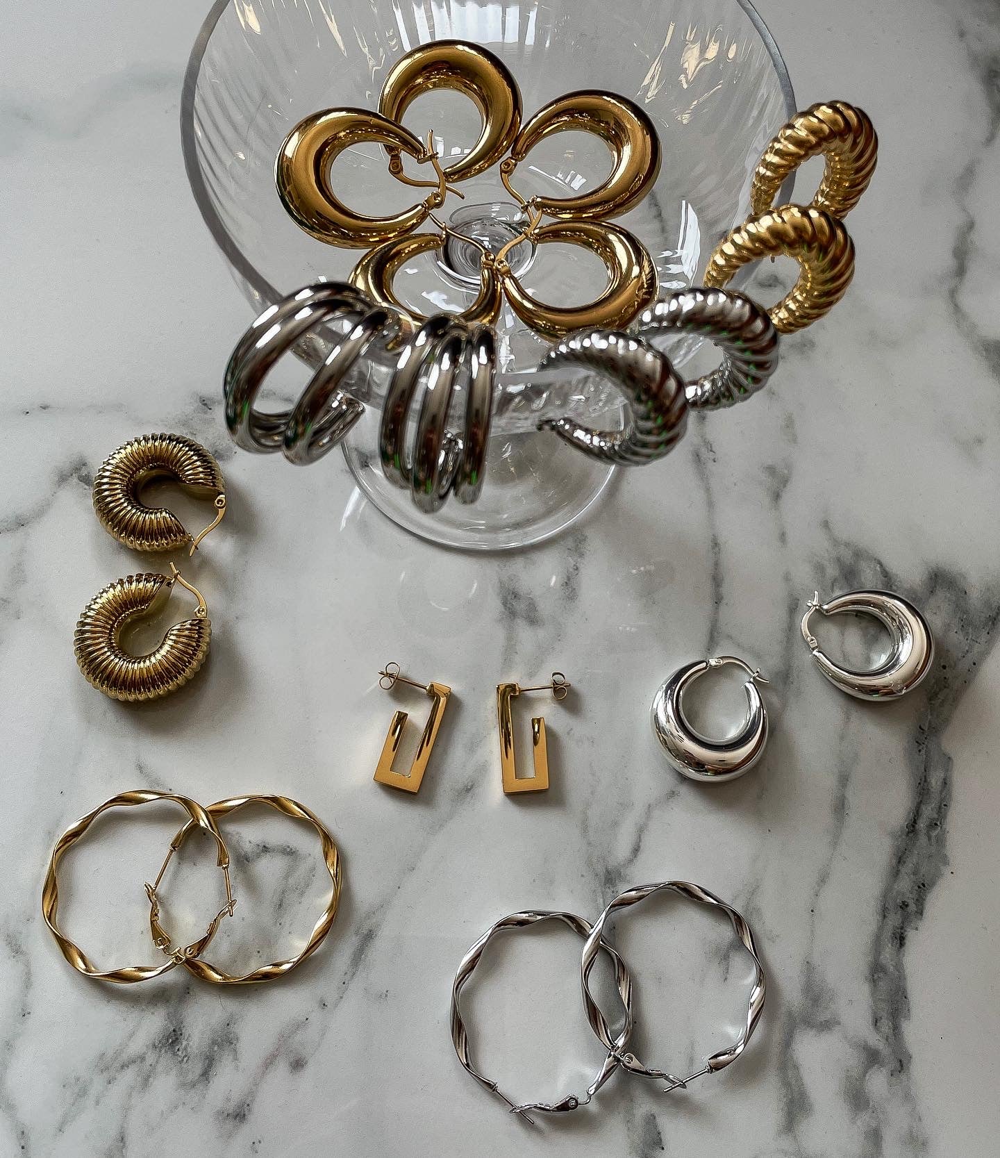 Put on our elegant Angela hoop earrings, which are designed to make you stand out from the crowd on any occasion. They are 100% waterproof, 18K gold or silver plated over stainless steel, so you can swim in them as much as you want. They make a perfect gift for someone special.