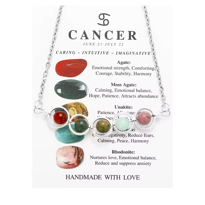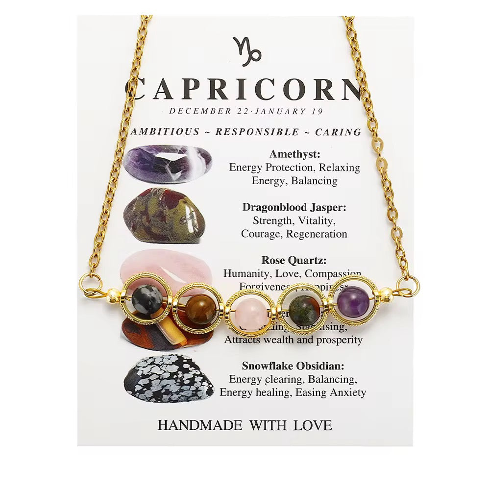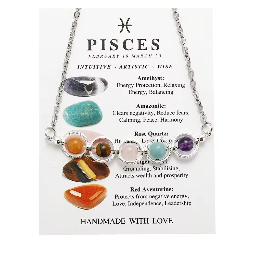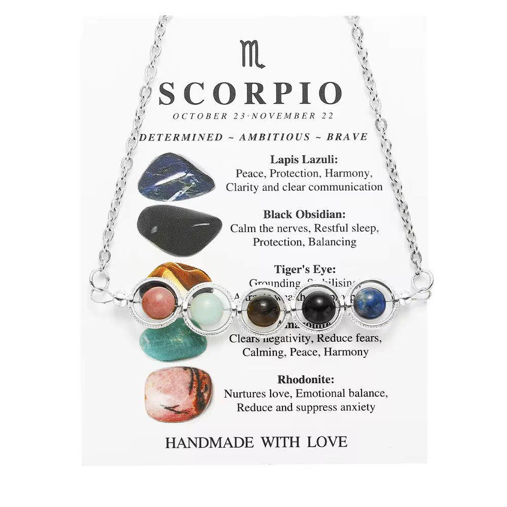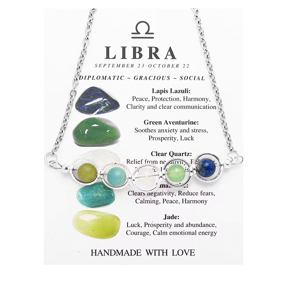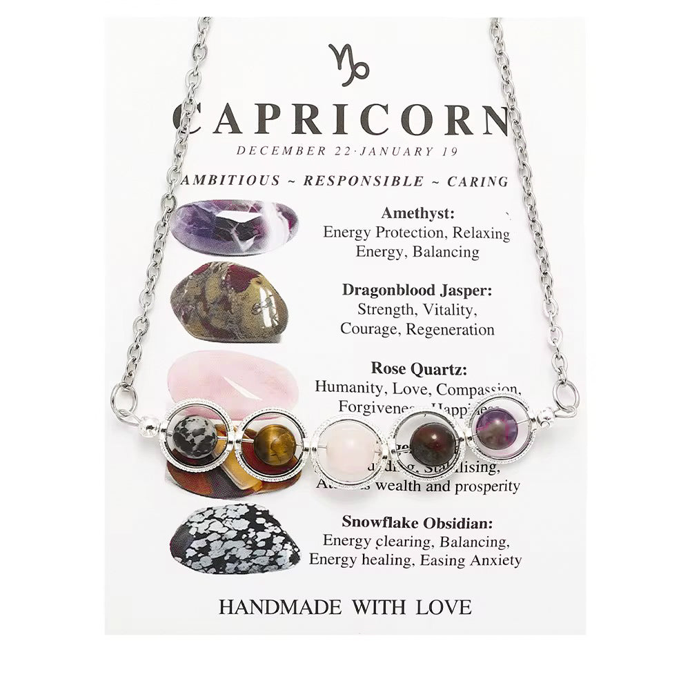 Get lucky with your zodiac birthstone necklace, featuring 5 authentic gemstones with beautiful meanings. The card explaining the meanings of each birthstone is included with the necklace. They are ready for gifting!