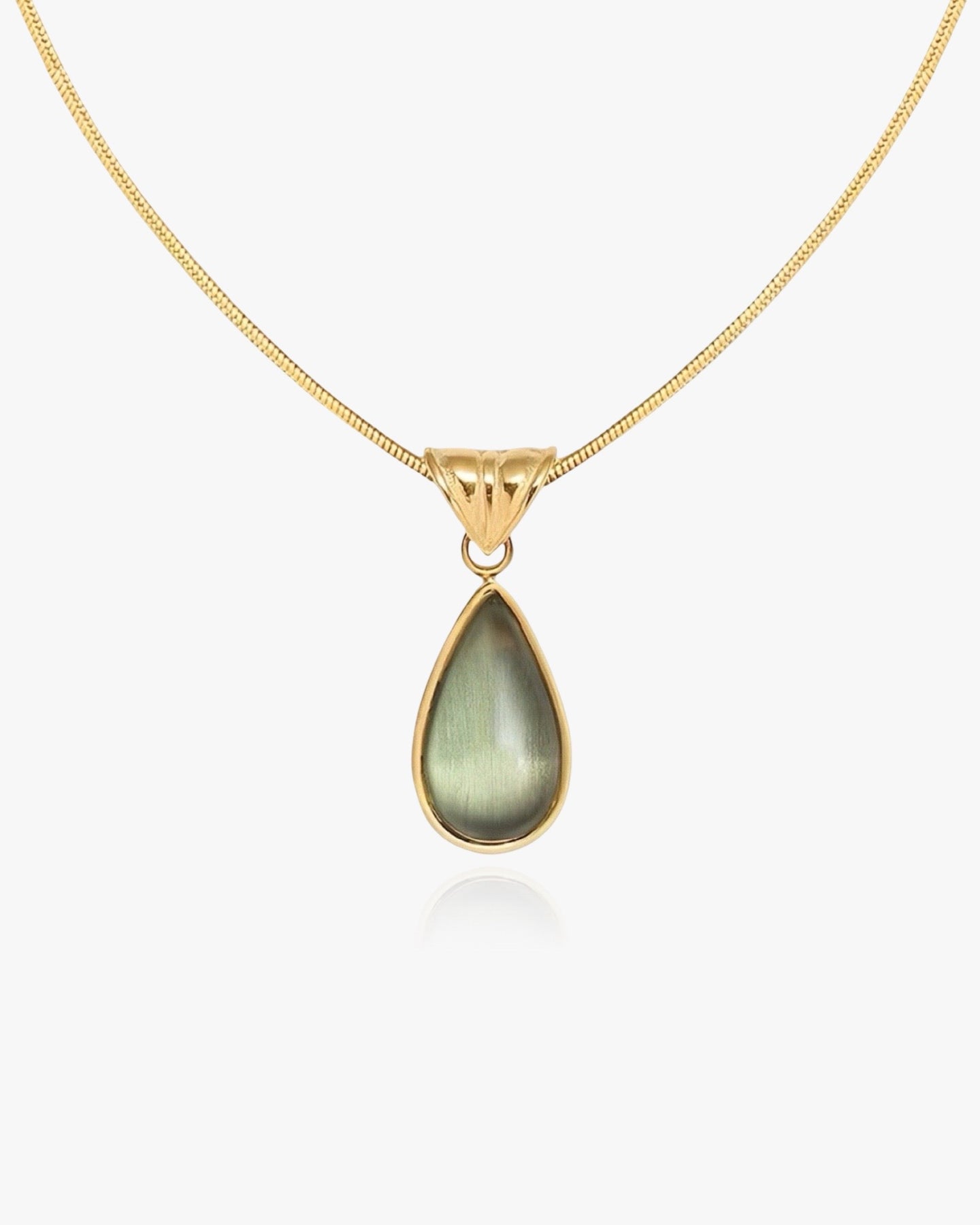 Our rustic-inspired water drop necklace with a cat’s eye stone is stylish, gold- or silver-plated and 100% water-resistant. It will lie perfectly across your neckline to create the most iconic looks. Perfect for layering, this necklace will look beautiful when wone up with any chain or pendant. It has an adjustable chain and can be worn at different lengths.