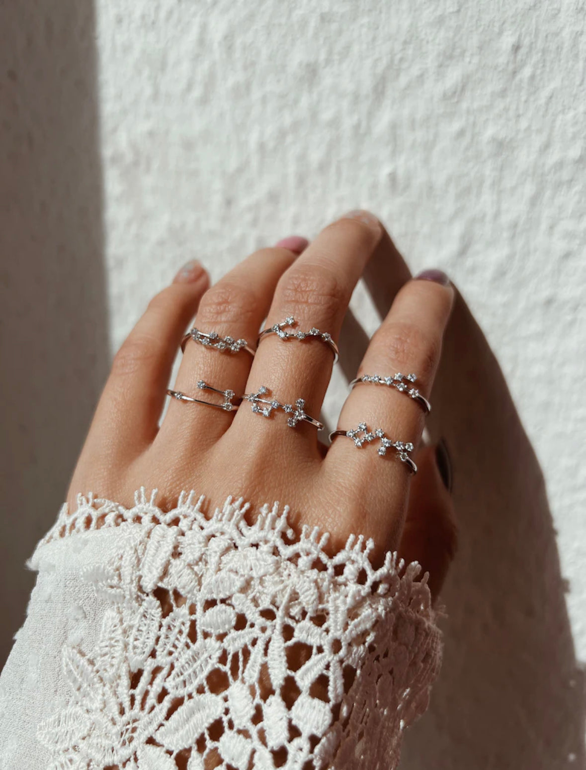 Get lucky with this refined and dainty star sign ring made of pure 925 Sterling Silver. It is adorned with beautiful crystals and it is perfect for stacking with other rings. It adds an elegant, luxurious twist to any outfit and makes a perfect gift, because it is precious and personal. And the best part? It's 100% waterproof and will keep its color forever.