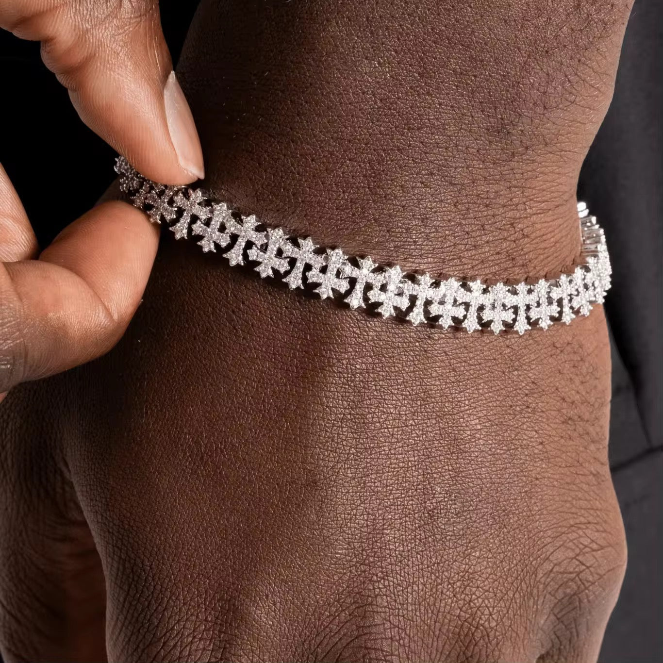 Our water-resistant classic tennis bracelet for men will lie perfectly across your wrist to achieve maximum shine. Handset VVS CZ stones catch light from every angle, sparkling hard—day or night. With a sleek icy profile, this one’s made for effortless drip.