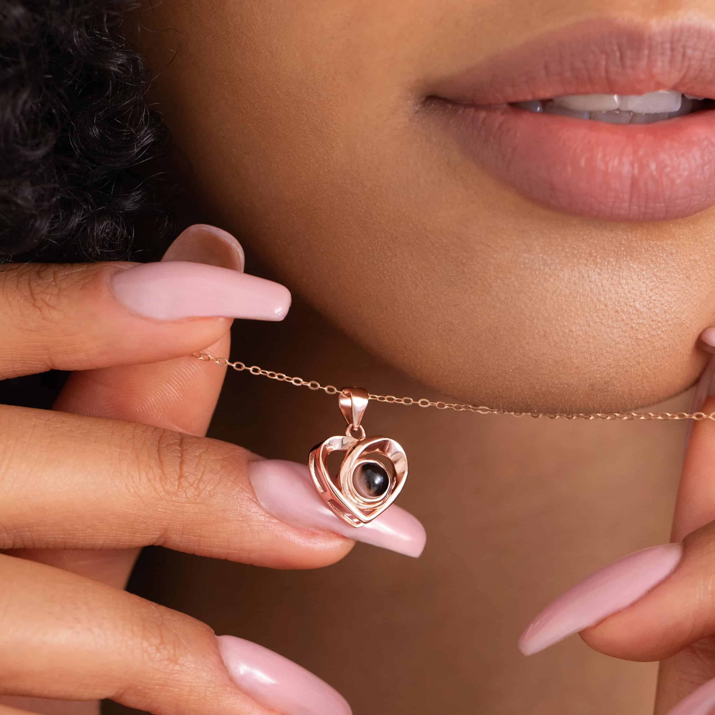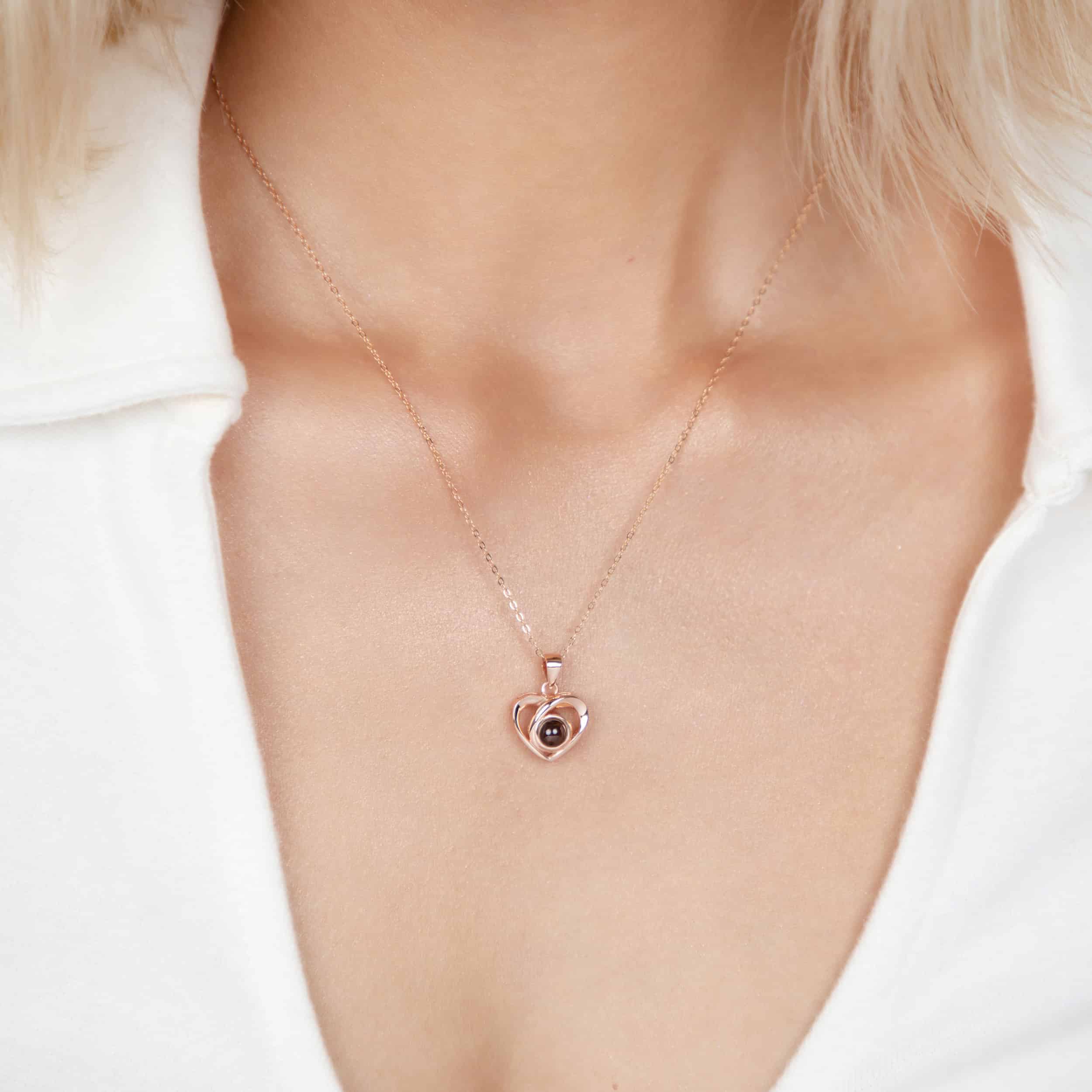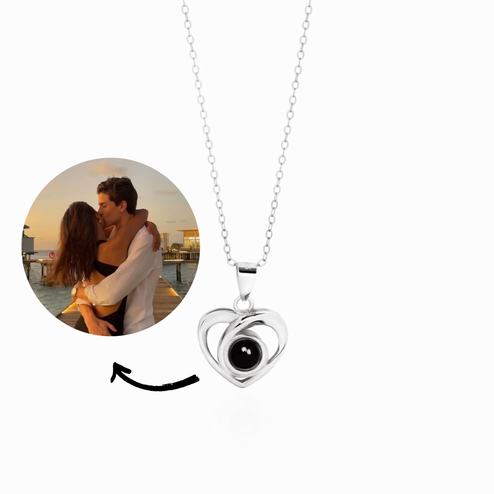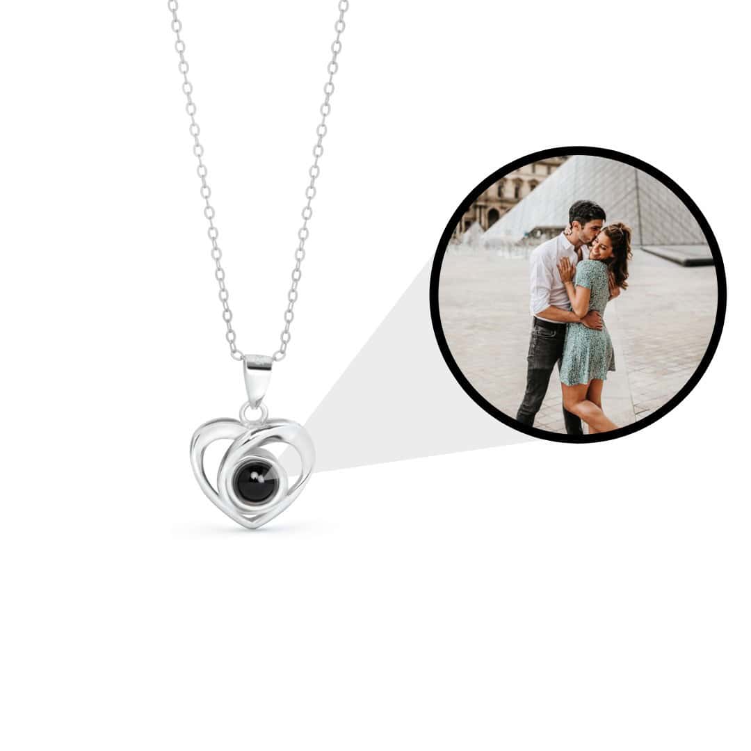 The Personalized Photo Heart Necklace is the perfect gift designed to keep your most treasured memories close to you. This enchanting piece allows you to showcase a hidden photo of your choice inside the charm, which you can view by simply looking inside or shining a light through to project it—symbolizing the light your loved ones bring into your life.