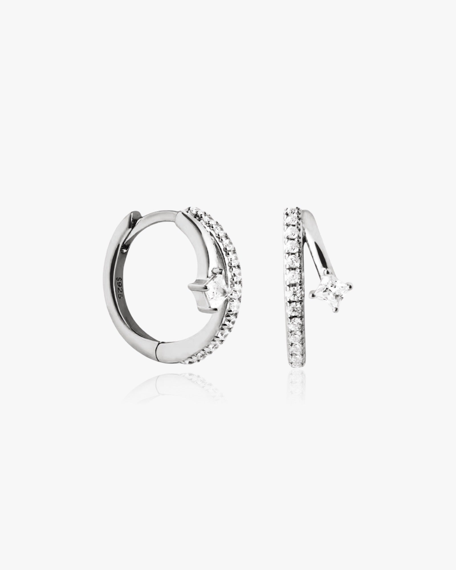 Enjoy never-ending compliments in our beautiful waterproof Sterling Silver double hoop earrings. These luxurious dainty earrings will gently hug your earlobes to create a beautiful and unique look. This original design features a little zirconia crystal Star. This elegant jewelry piece is perfect for a celebration or as a Christmas gift, and it is a part of our festive jewelry collection. The earrings and hypoallergenic and waterproof.
