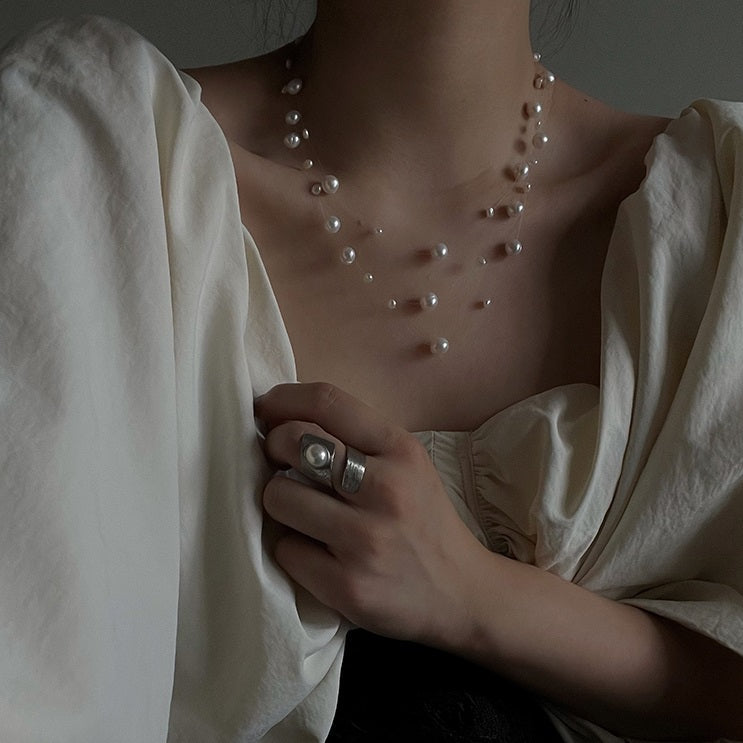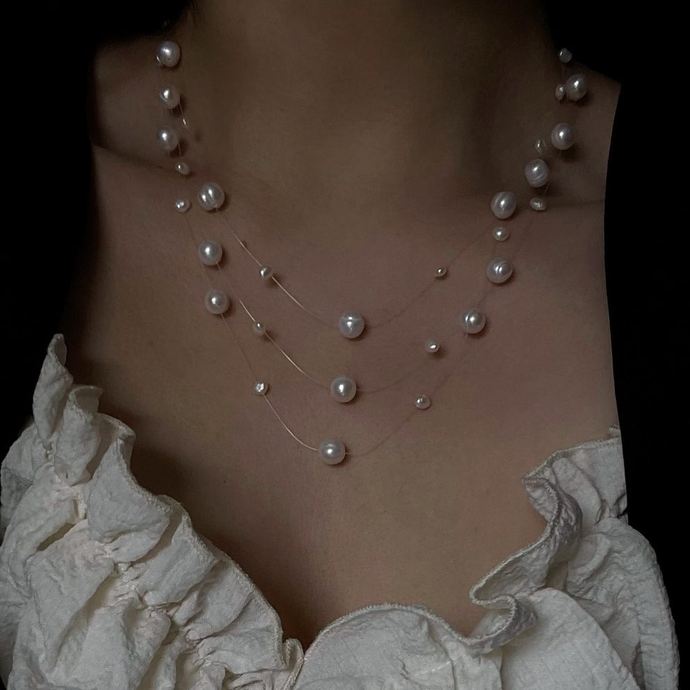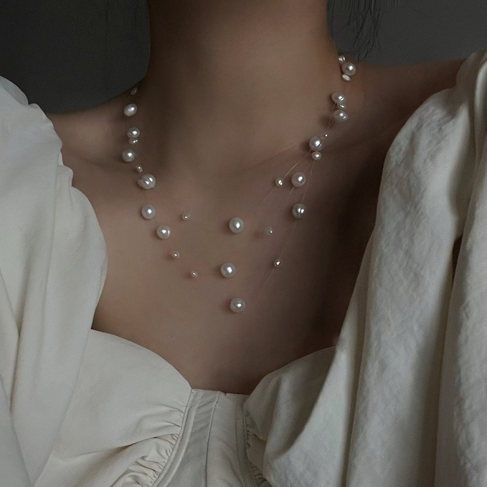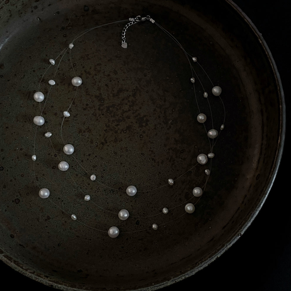 Our hand-made natural freshwater pearl necklace will lie perfectly across your neckline to create the most unforgettable of looks. Perfect for summer season or wedding jewelry selection, this delicate layered necklace with irregular pearls can be worn at adjustable length, choker style or regular length. And the best part? It's 100% waterproof, as its closure is made of silver plated stainless steel.