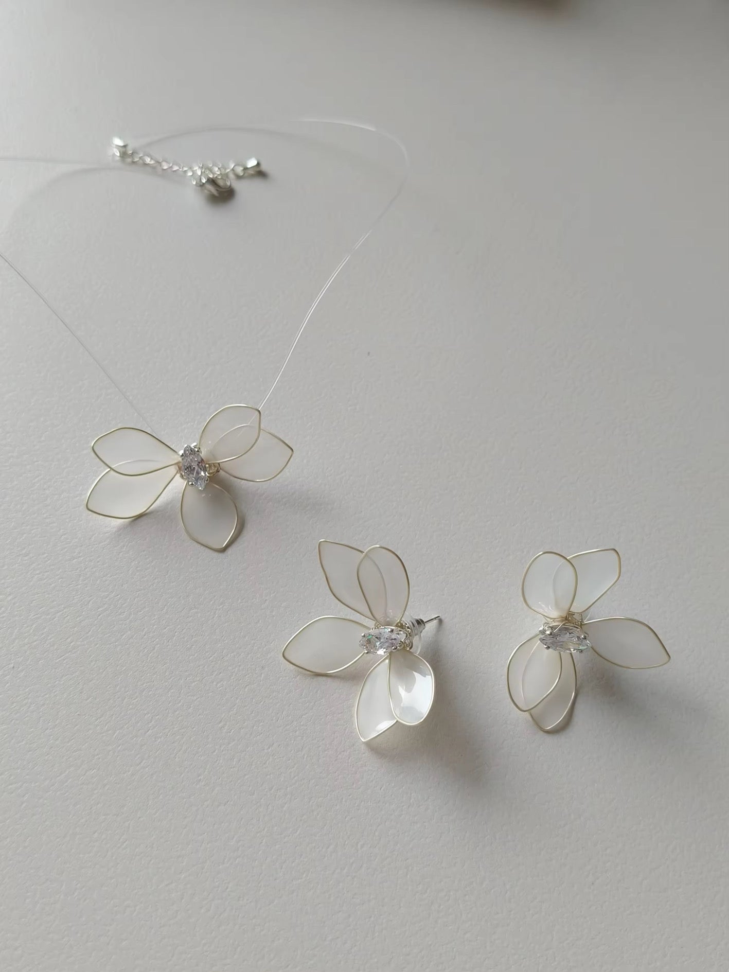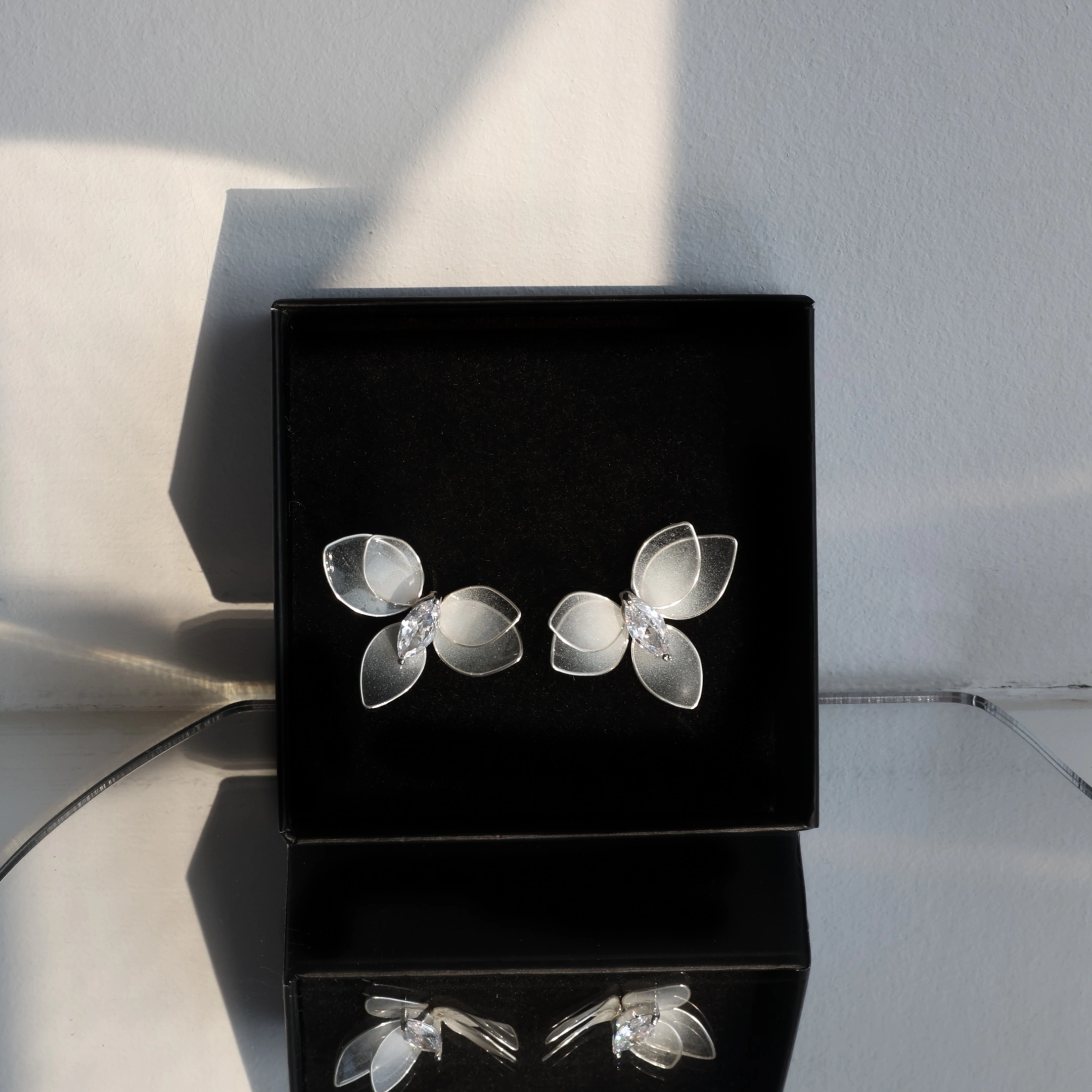 Our hand-made orchid earrings with marquise-cut crystals will hang perfectly below your ears to create the most unforgettable of looks. Perfect for wedding jewelry selection, these delicate earrings are a true work of art. They feature hand-painted petals.