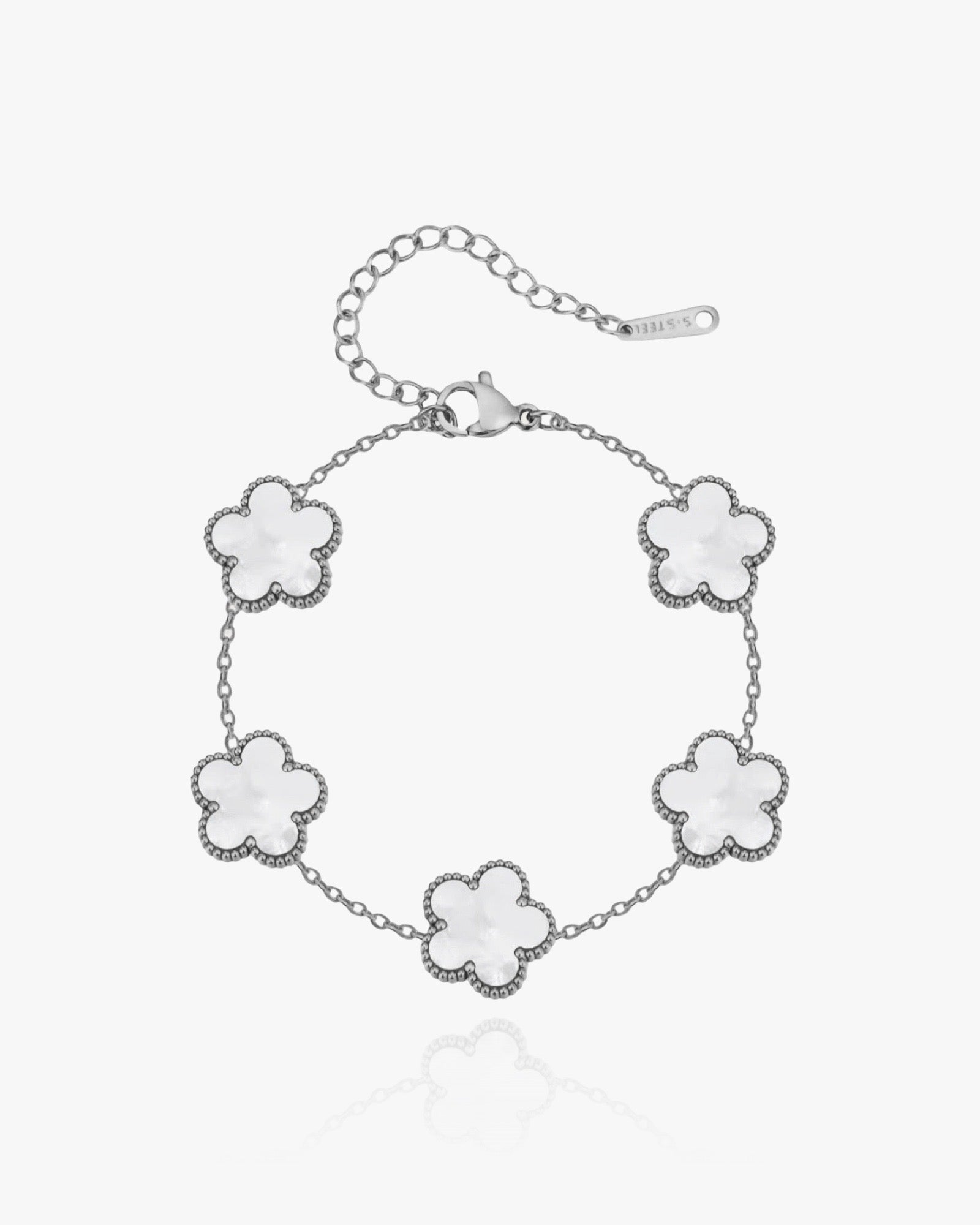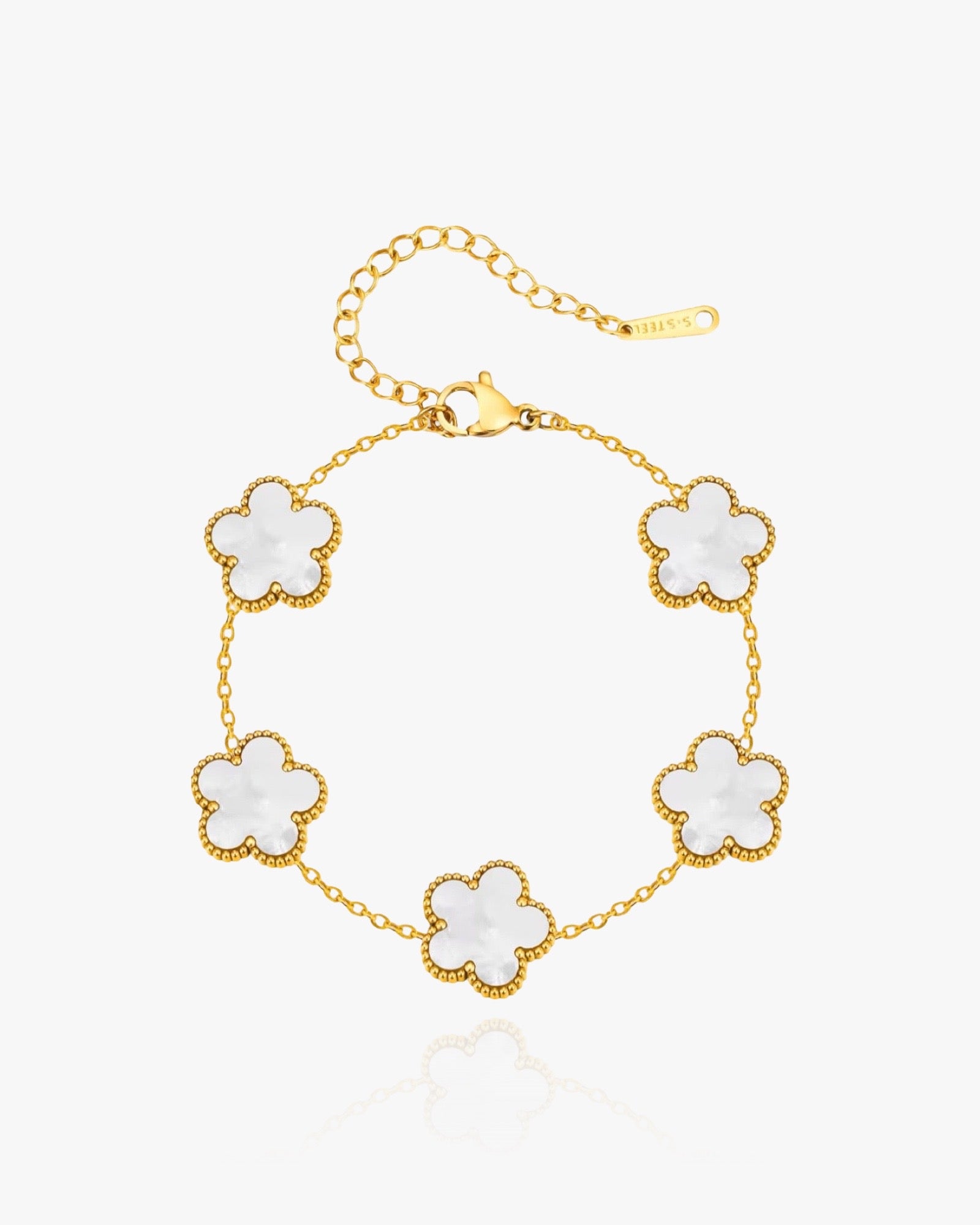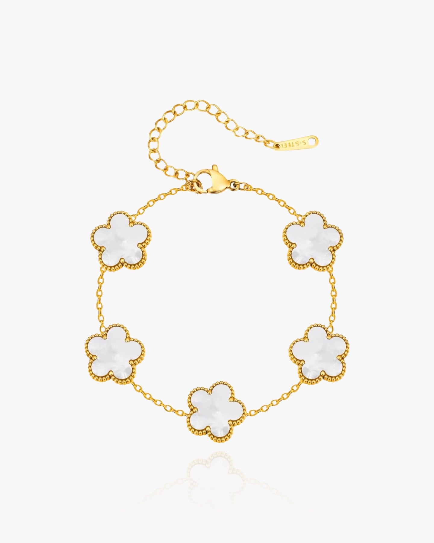 Our elegant 100% waterproof flower clover bracelet let will lie perfectly across your wrist to create the most beautiful of looks. It comes in gold or silver finish.