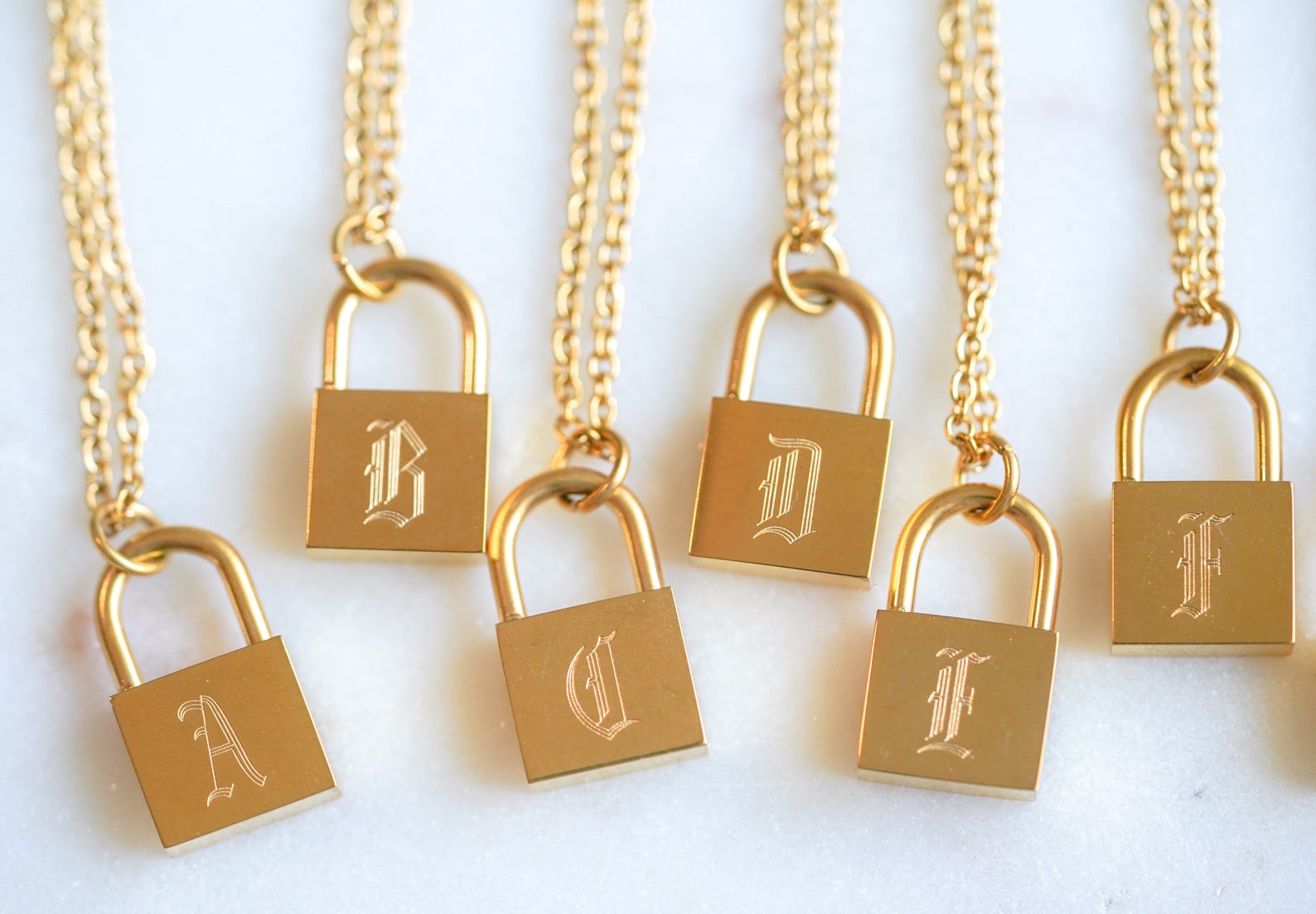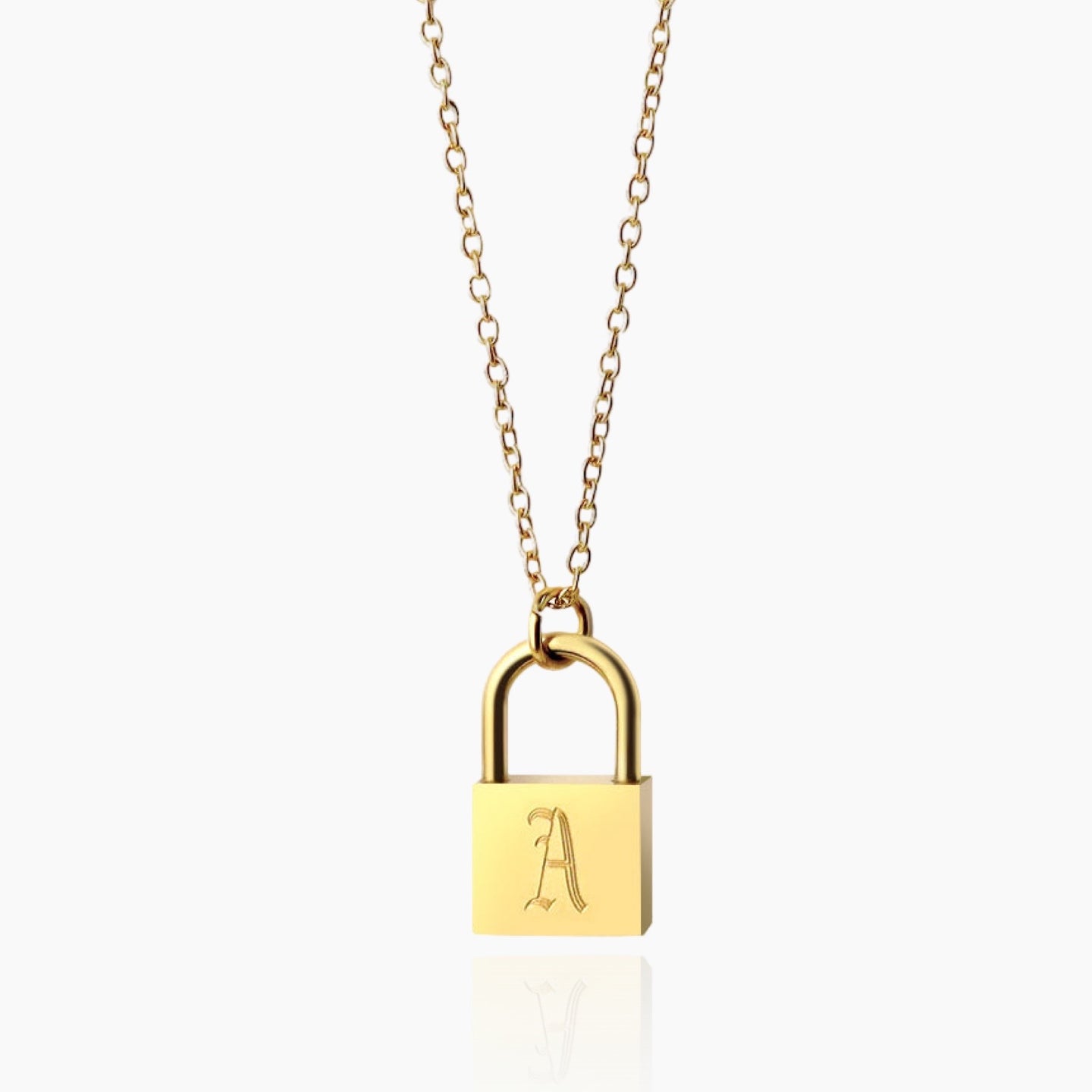 What better way to show your love and be personal than with our 18K gold engraved lock necklace? It features a high-shine gold or silver plated stainless steel lock on a gold or silver plated chain that hangs right below your neck and instantly gives your look a chic upgrade. It makes a perfect gift, because it is precious and memorable.