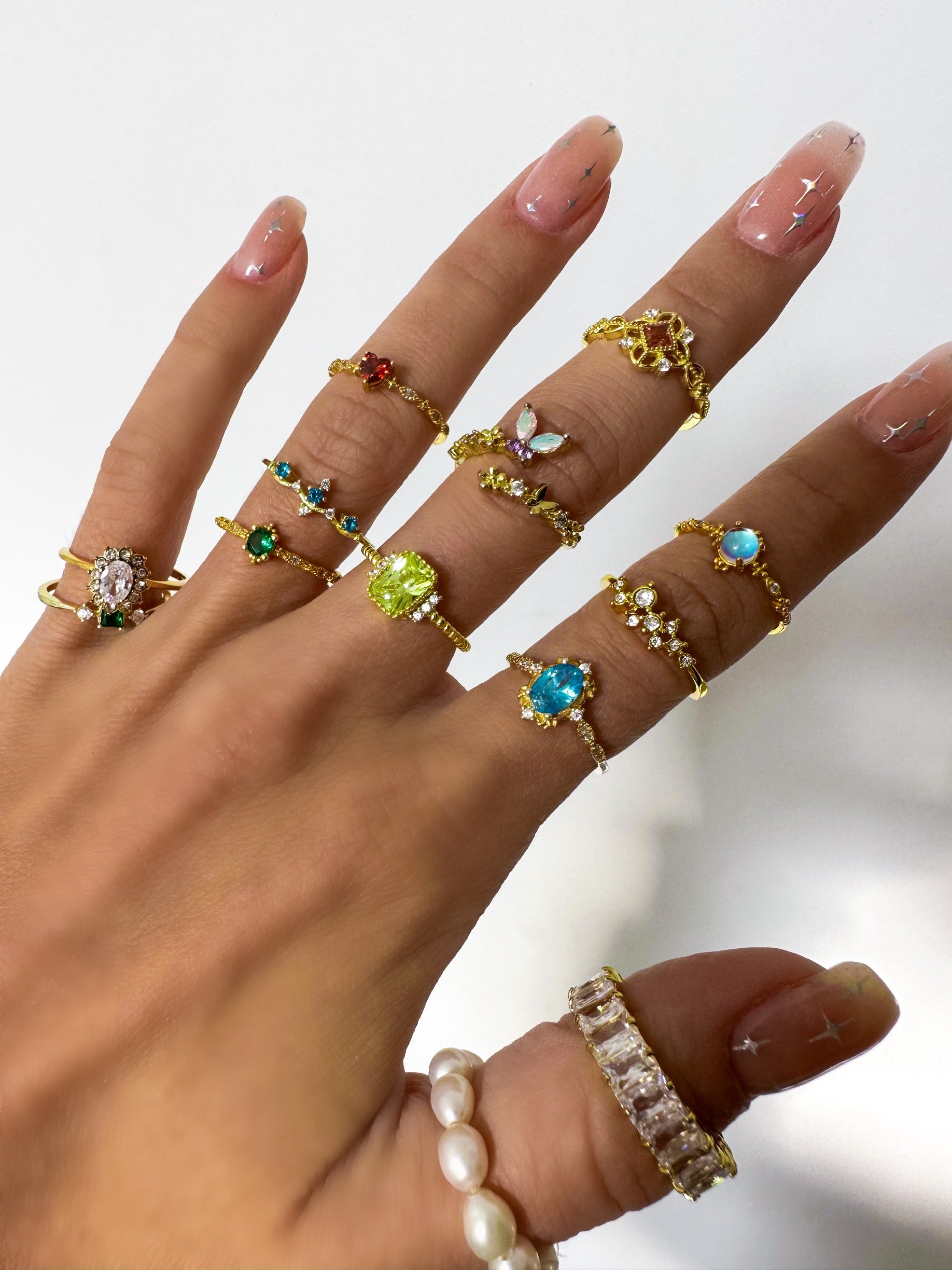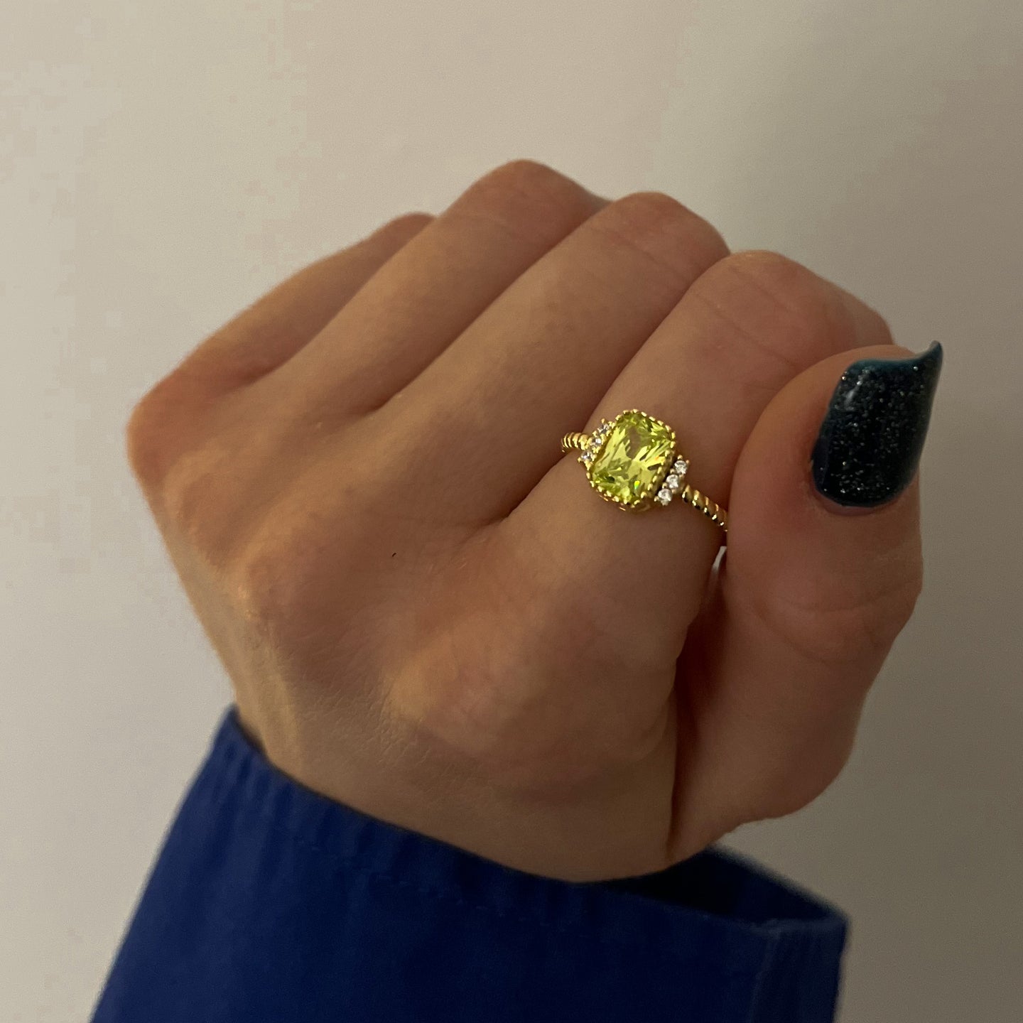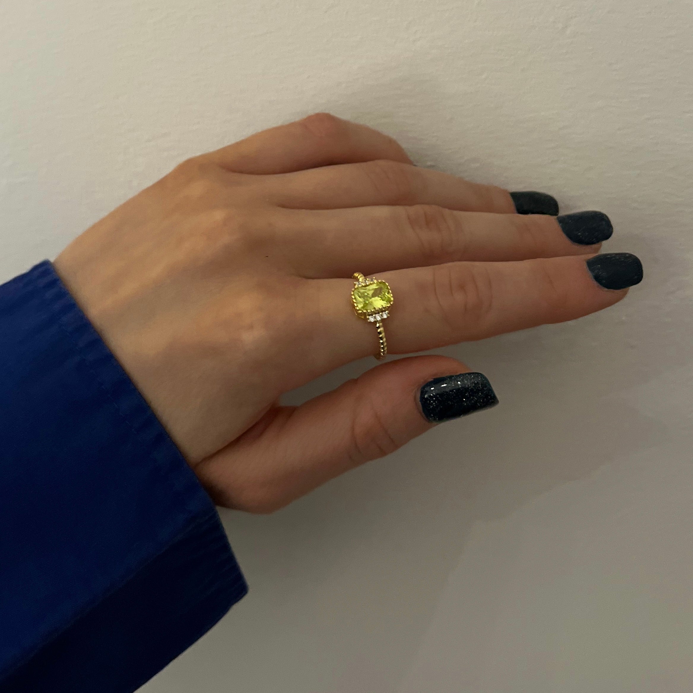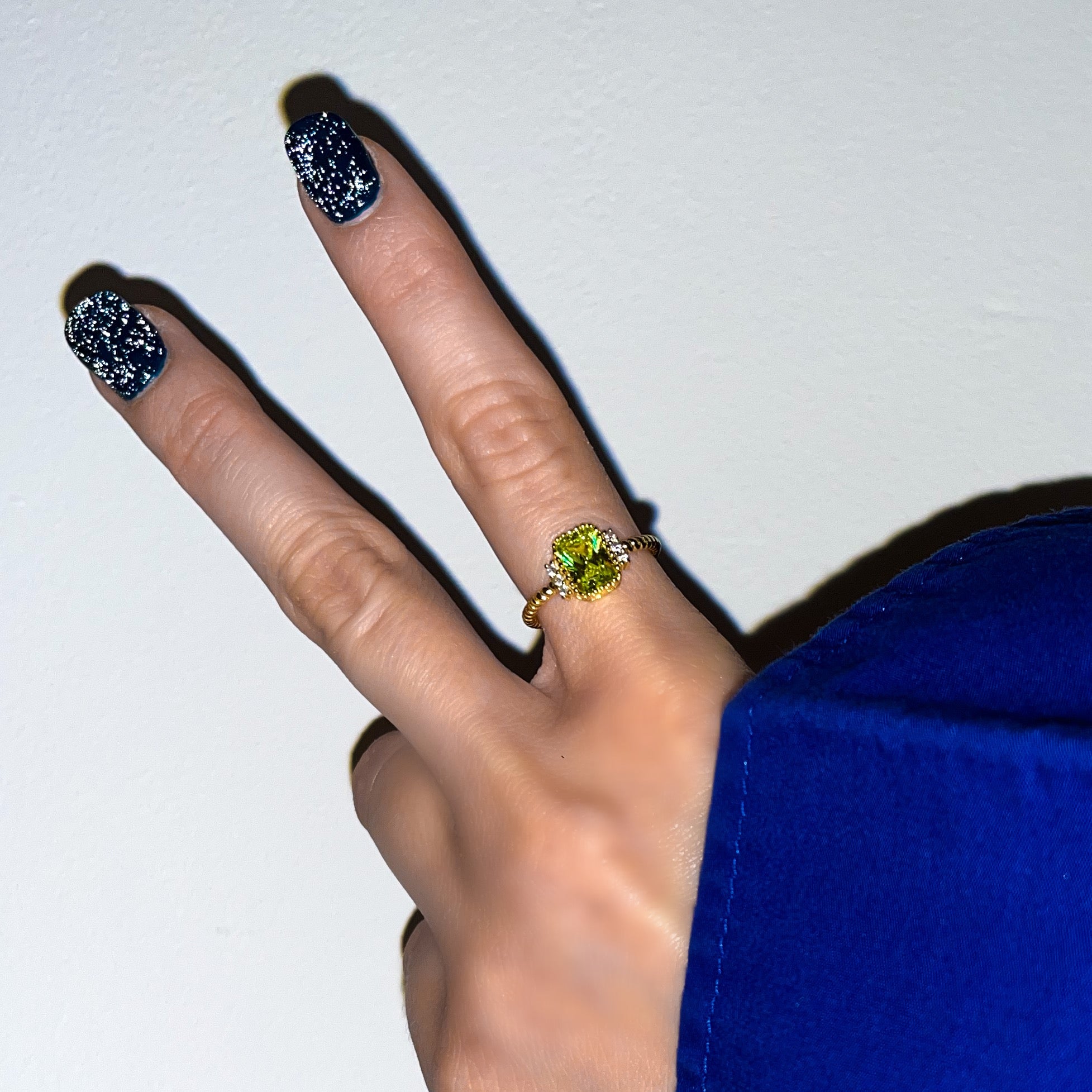 Introducing our most magical ring so far: dewy lime-green Magic ring. It is adorned with beautiful crystals and has a pure 925 Sterling Silver base, so it is completely waterproof and will stay beautiful forever. The ring fits all sizes because it has an adjustable base. This ring is a responsible choice: its aesthetic is timeless, so you can pass it down the generations. It looks classy and makes a perfect gift for someone special.