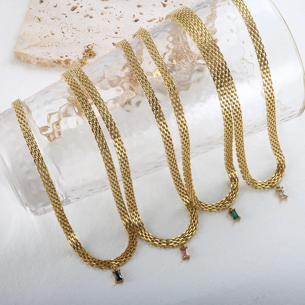 Our elegant and precious crystal necklace is made out of desire to embody the love and affection. It features a natural zircon stone on a gorgeous mesh chain. It will lie beautifully across your neckline to create the most delicate of looks. It’s 100% waterproof & perfect for everyday wear. Great for layering, this 35 cm pendant necklace comes in 3 color options: Green, White & Blue. It makes a perfect gift for someone special.