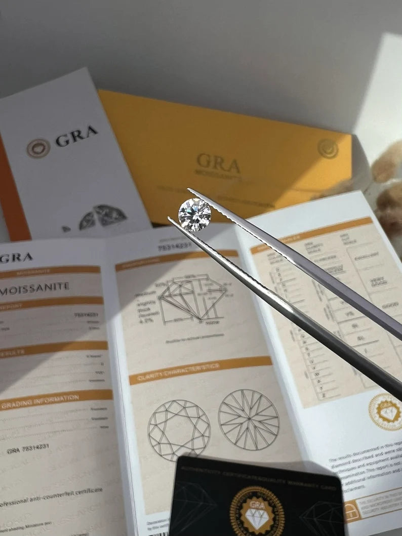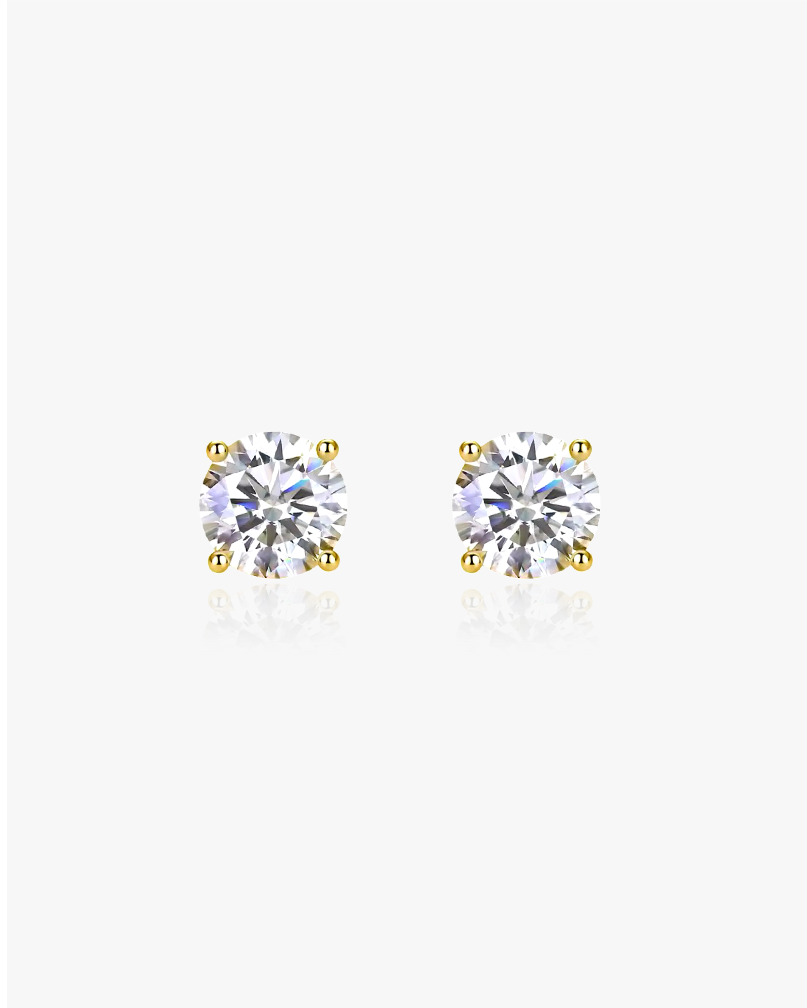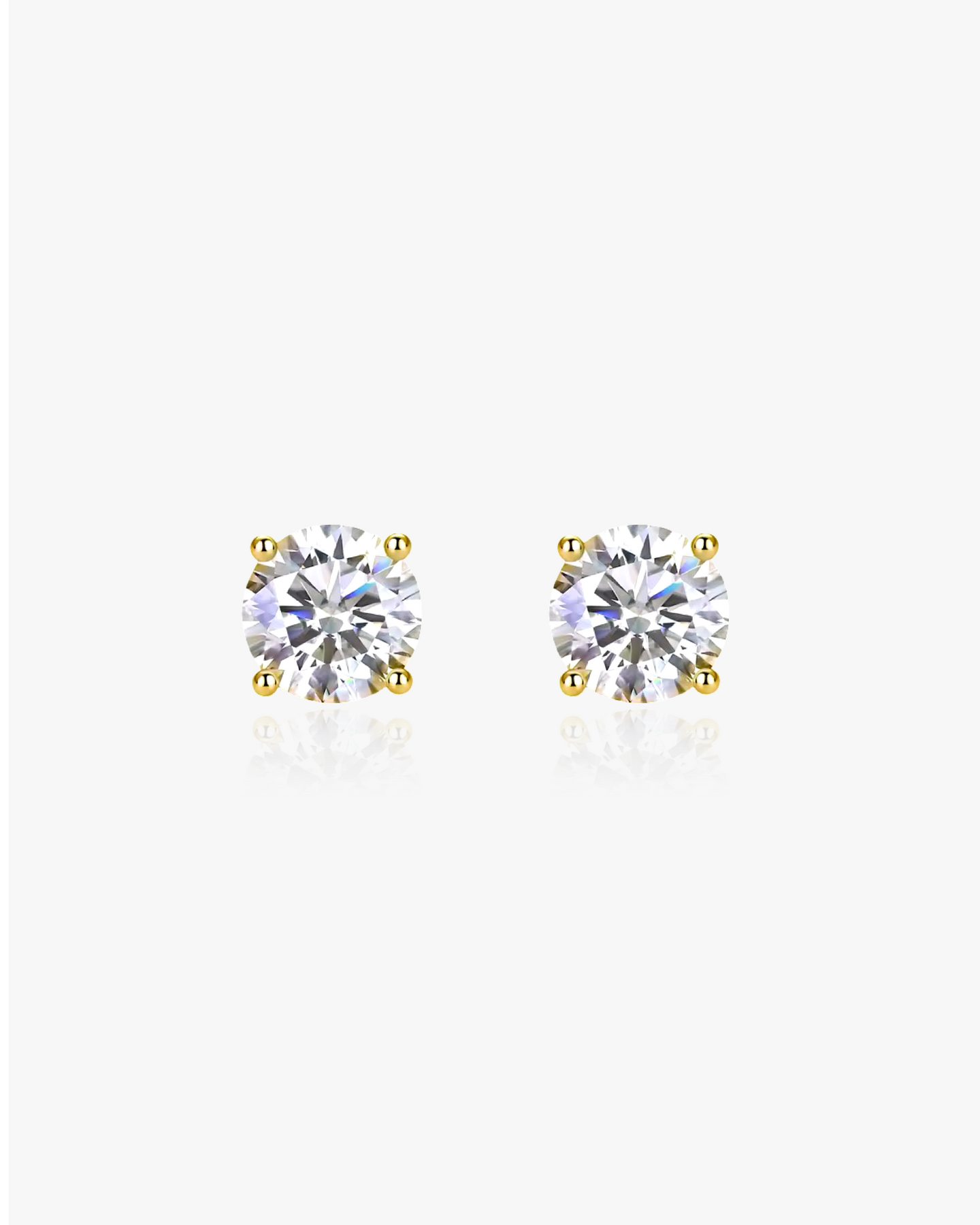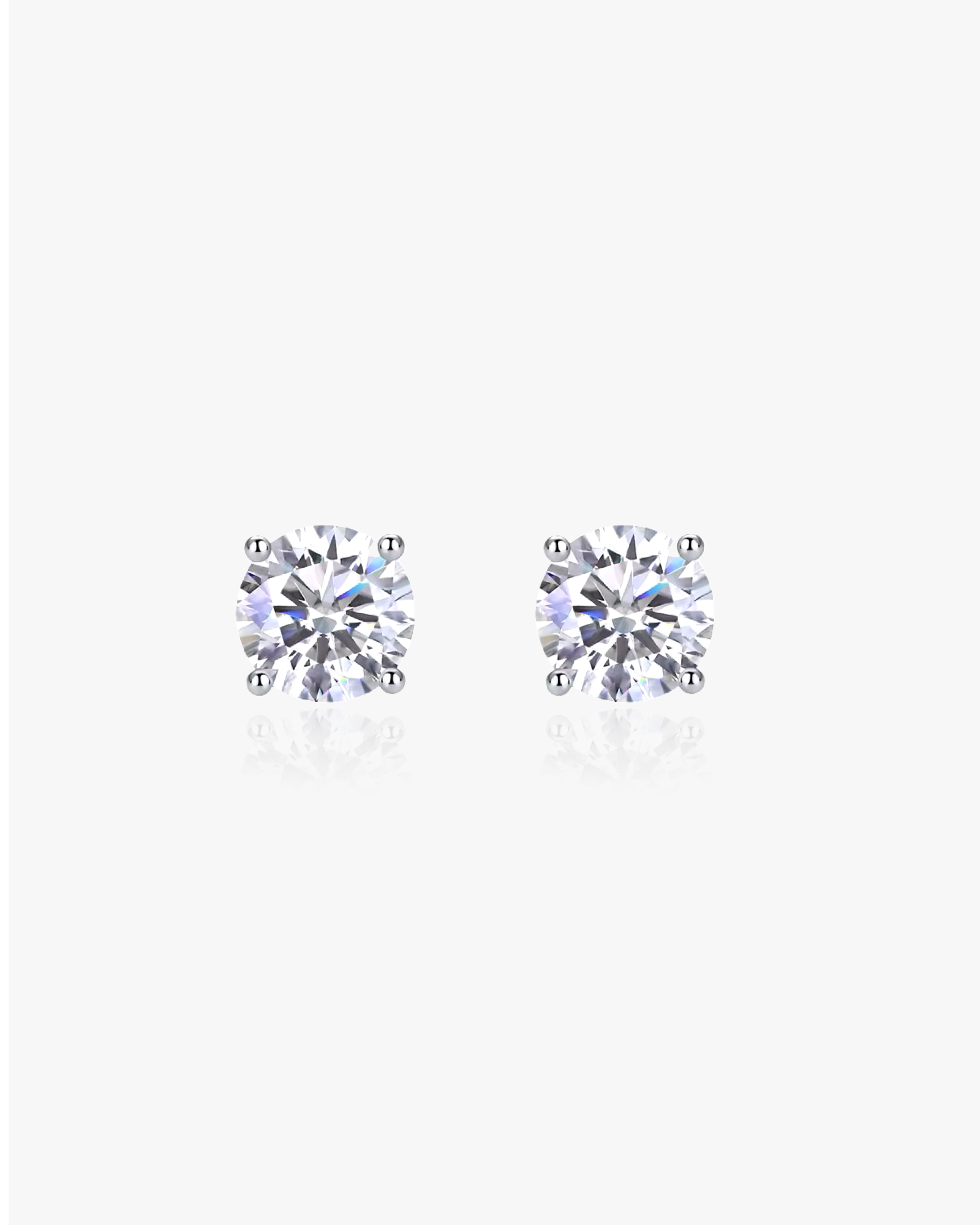 Shiny VVS1 and D Grade Moissanite studs are shining bright. They have a Mohs hardness rating of 9.25 out of 10 and will test positive as diamonds on most handheld diamond testers. Crafted in Sterling silver with gold or rhodium plating, these icy diamond studs are 100% water and sweat-resistant and will not discolor from everyday wear.