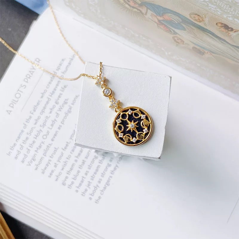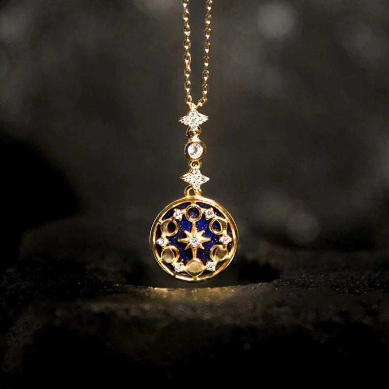 925 Sterling Silver Sandstone Moon Phases Necklace