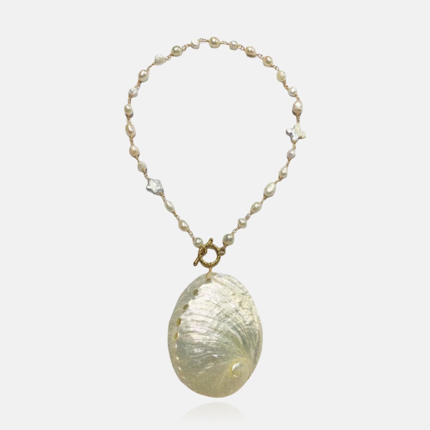 The most beautiful shell necklace of this summer season is here! Our hand-made natural shell necklace with adjustable length celebrates positivity and femininity. It features an aesthetically pleasing shell on a waterproof natural pearl chain. This statement necklace is a perfect everyday item because it is completely waterproof and is made of premium stainless steel.