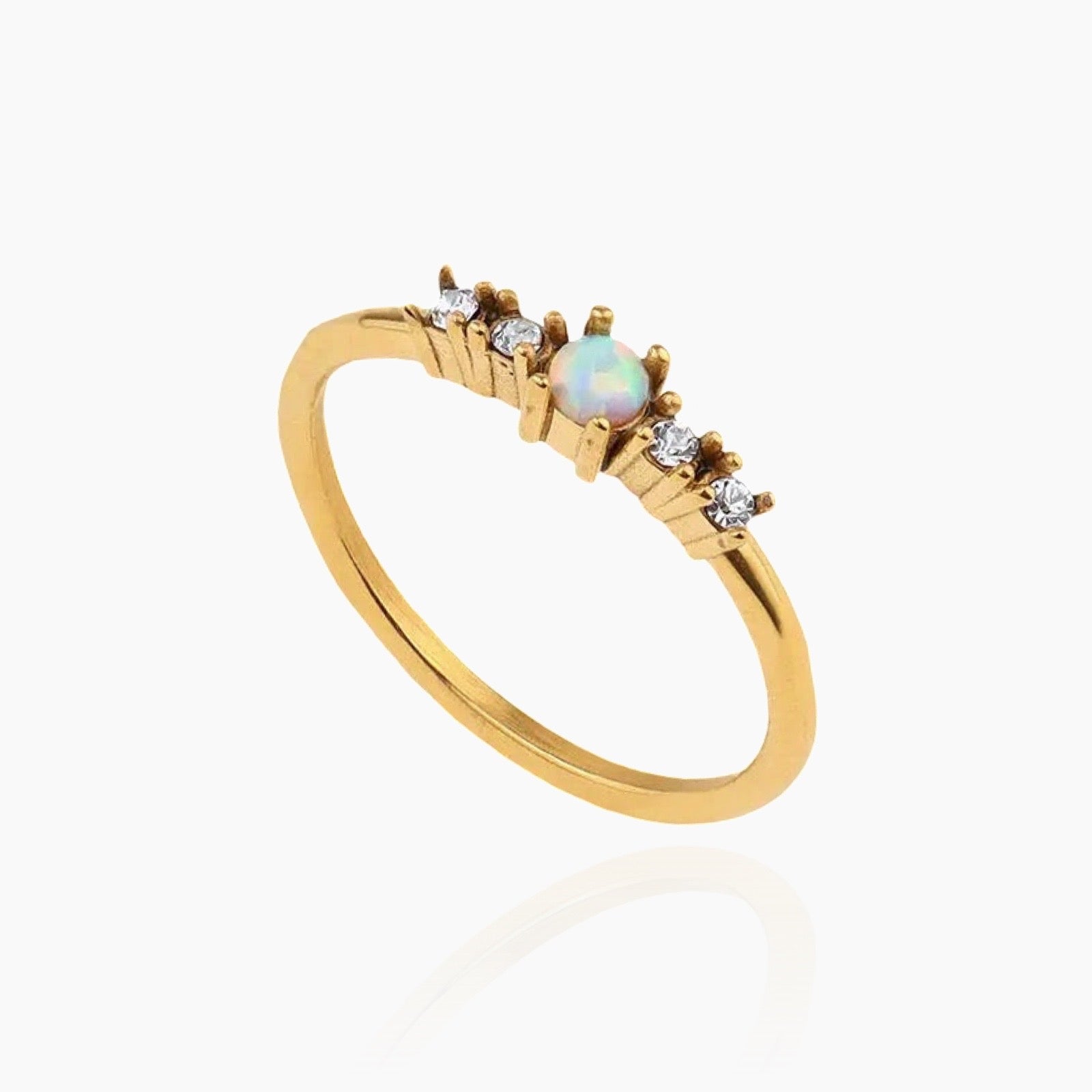 Turning into a fairytale character is easy: just put on our timeless natural Opal ring. It is adorned with beautiful crystals and has a pure 925 Sterling Silver base, so it will make you shine brighter than the stars. It has a 18K Gold plating and is completely waterproof, so it will stay beautiful forever. It looks luxurious and makes a perfect gift for someone special.