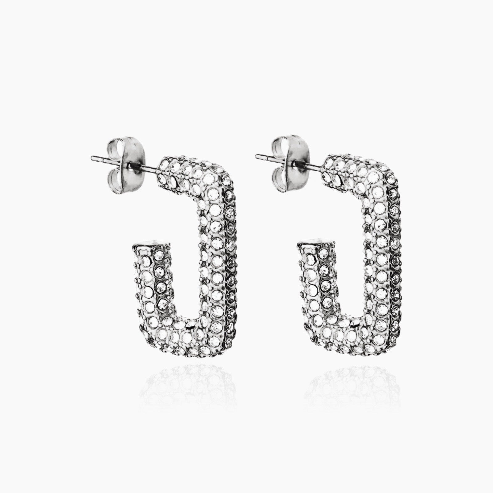 POPULAR GIRL - 18K Gold / Silver CZ Rectangle Hoop Earrings