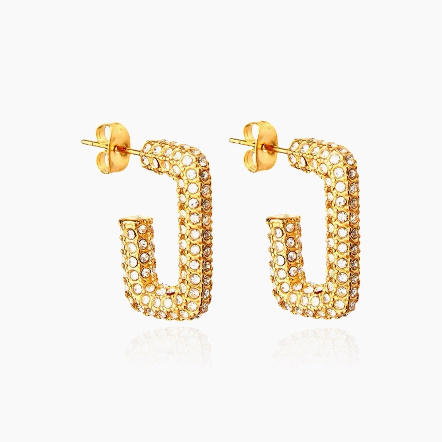 Our elegant micro pave crystal hoop earrings will instantly elevate your look add an extra spark to your life. These beauties come in gold and silver and will make you stand out from the crowd on any occasion. They are 100% waterproof, 18K gold or silver plated over premium stainless steel, so you can swim and shower in them as much as you want. They make a perfect gift for someone special.