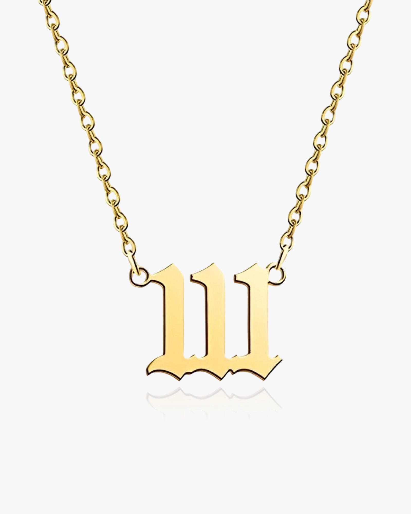 Attract the right kind of energy in your life with 18K Gold- or Silver-filled Angel number necklace in old English writing. It is perfect for layering with other necklaces: it is 35 cm long with a 5 cm extender. And the best part? It's 100% waterproof, as it is made of 18K gold plated stainless steel. It makes a perfect gift, because it is precious and personal.