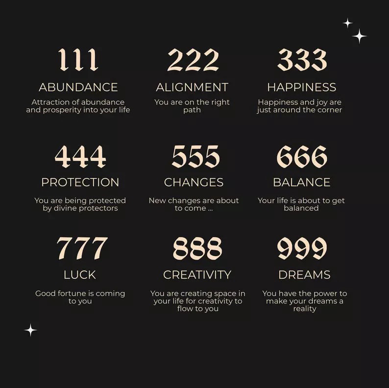 Ever noticed yourself stumbling upon repeating number sequences like 111, 555, or 777… basically everywhere? Like, let’s say you wake up from a nap at 2:22 p.m., then you buy a coffee for $2.22, then you watch a movie that’s 2 hours and 22 minutes long. If you’ve noticed such a pattern, it may not be a coincidence. Angel numbers are recurring sequences of numbers that have spiritual significance, according to numerology.