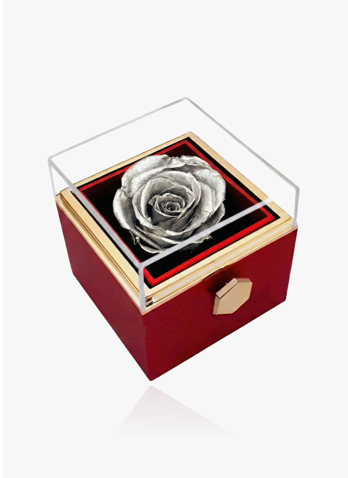 The timeless rose box, which includes a bespoke necklace, is a present that is meant to be forever. A real rose is treated with a patented technology so its authentic beauty never fades, symbolizing eternal love and affection.