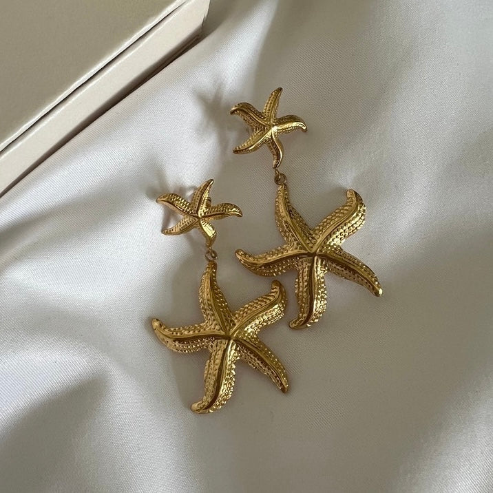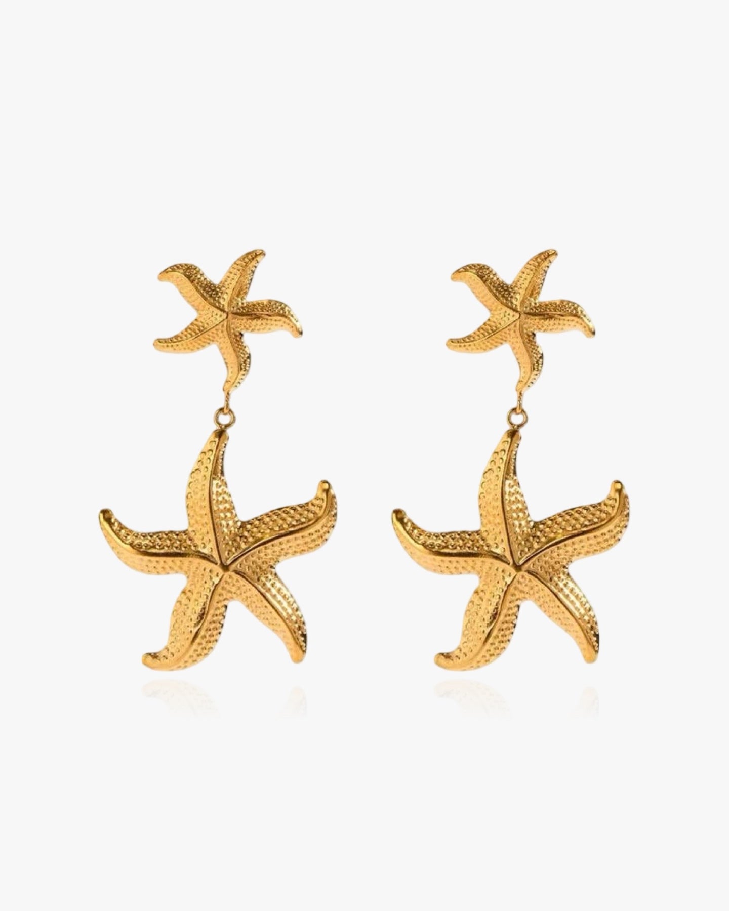 These cheeky starfish-shaped earrings are a perfect accessory to elevate your looks. They are light and designed for everyday wear because they are 100% waterproof. They are available in gold or silver finish and will look beautiful with any of your outfits. Beautiful jewelry to take on vacation, for spring and summer seasons.