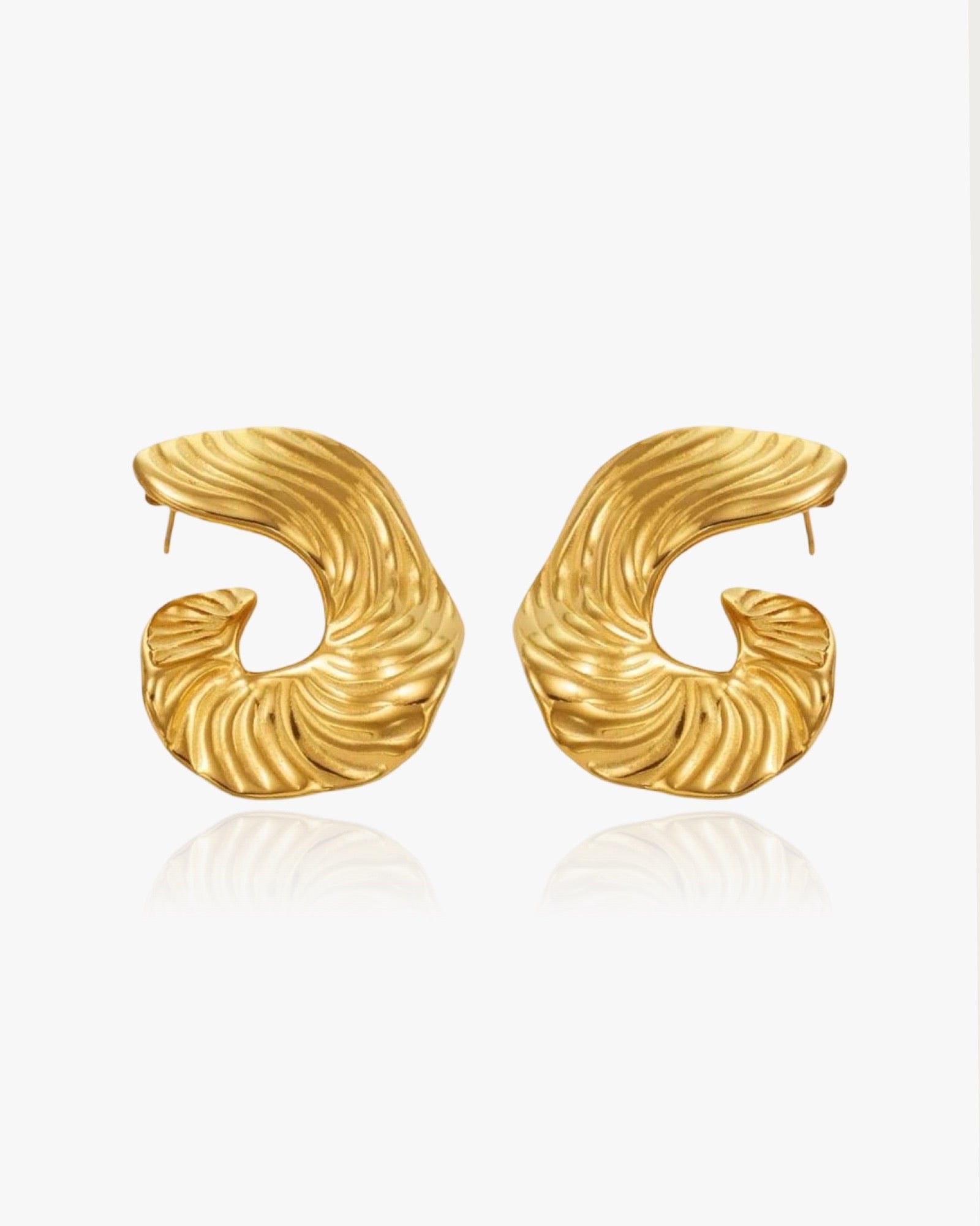 Add a classy touch to your look with these elegant wave-shaped earrings. They are designed to make you feel gorgeous on any occasion. They are 100% waterproof, 18K gold or silver plated over stainless steel, so you can shower, swim and do sports. They are lightweight and comfortable to wear, and make a perfect gift for someone special.