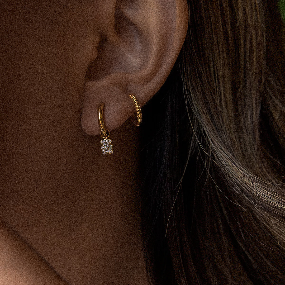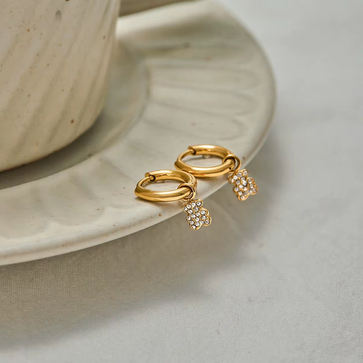 These dainty earrings with shiny little bears are perfect for everyday wear because they are 100% waterproof. They are available in gold and will look beautiful with any of your looks.
