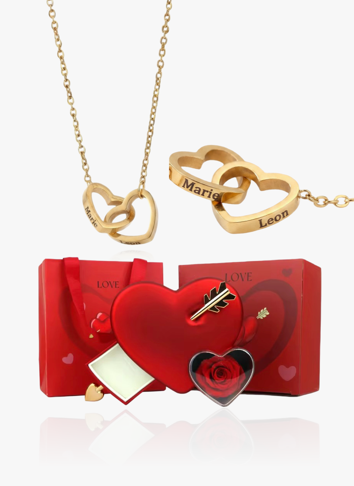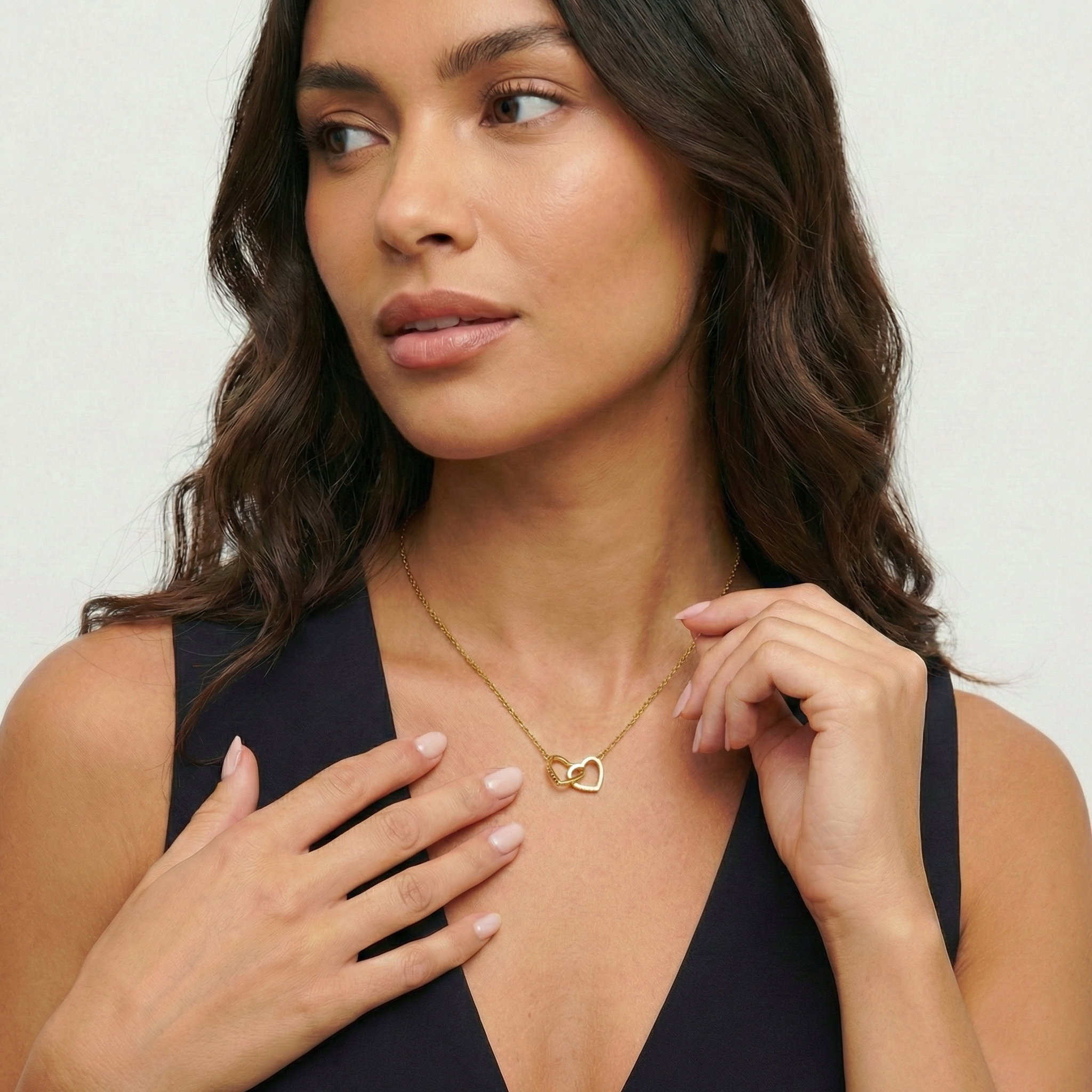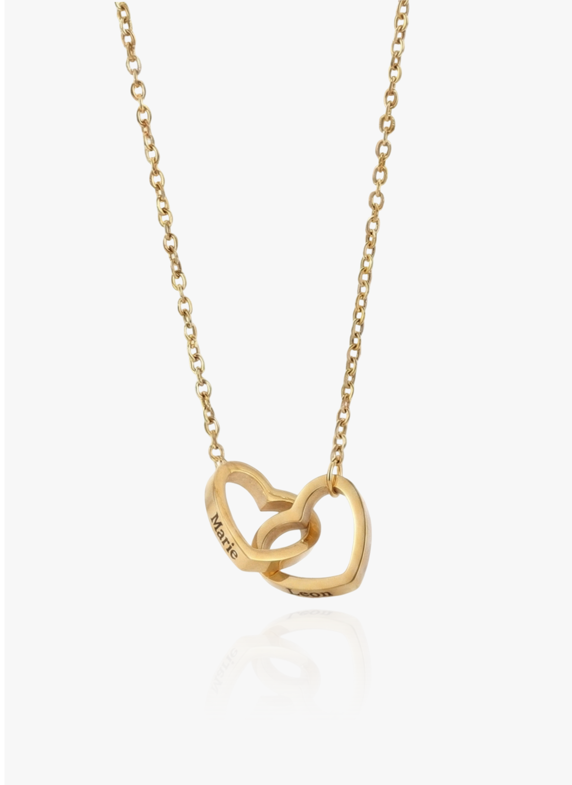 Each linked hearts necklace is truly unique, personal and made by hand from water-friendly high quality materials. Make this your signature everyday necklace or give it as an unforgettable Valentine’s Day or anniversary gift for your girlfriend or wife. Add your name and the name of your loved one, to be engraved on the hearts forever. This delicate item is perfect for layering and adds a signature element to any of the outfits.