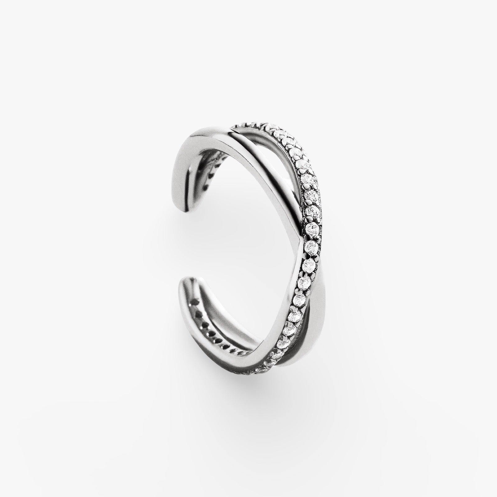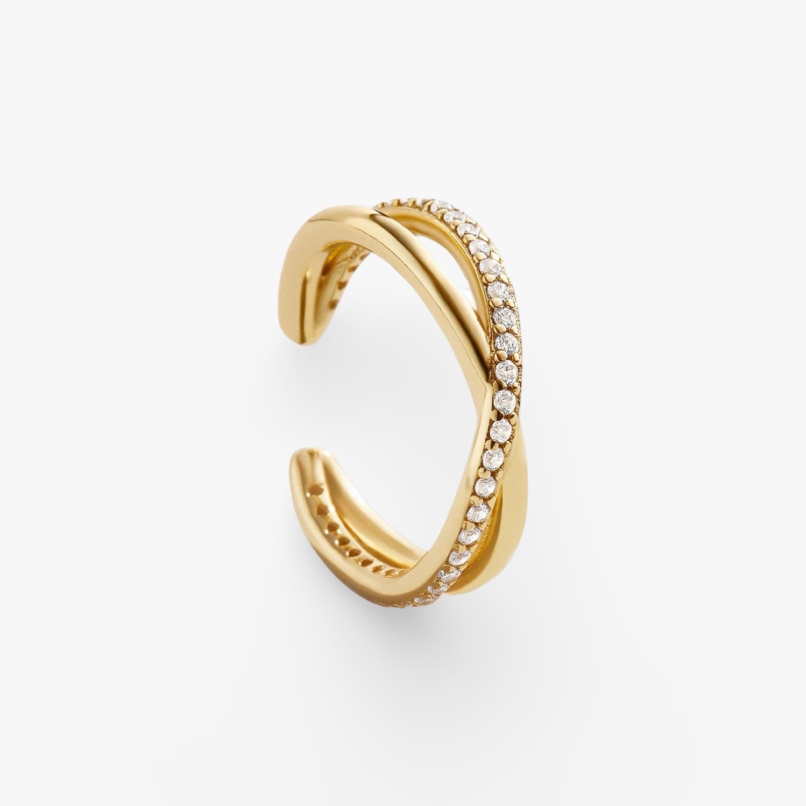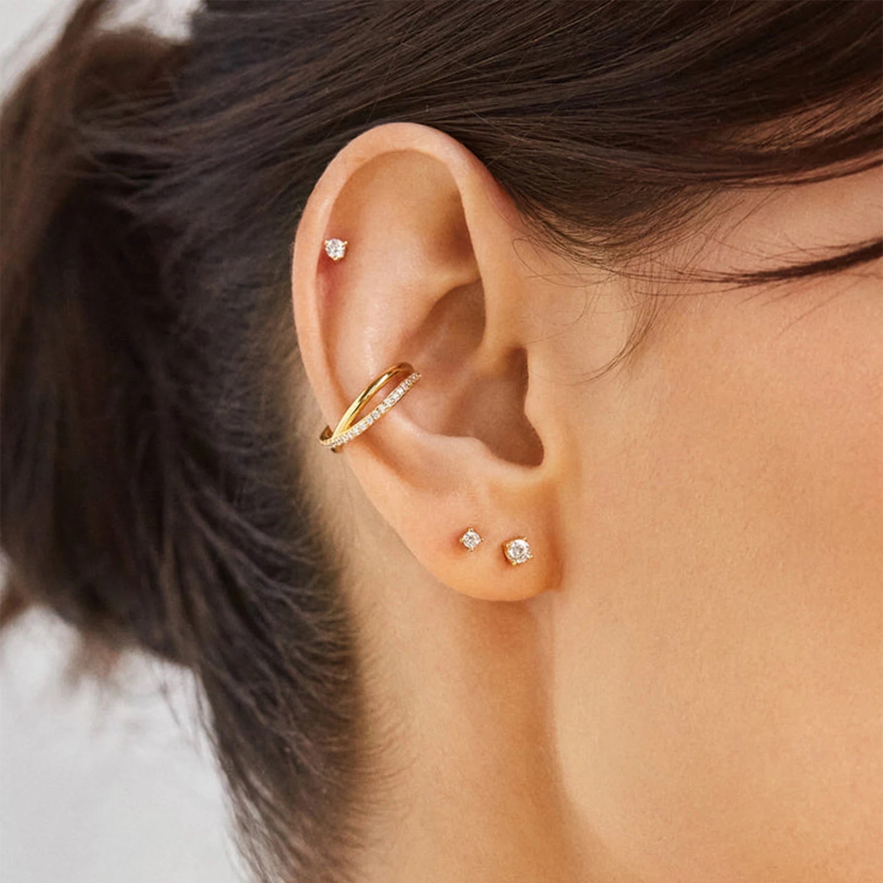 X-Shape Pave Crystal Cuff Earring: Dainty Double Cuff